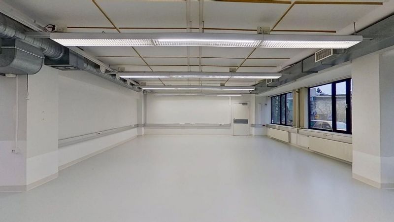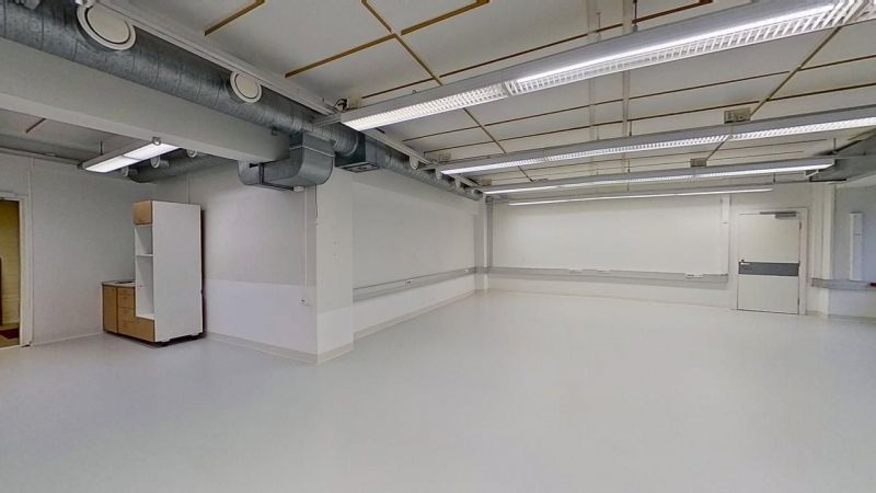 Valoisa ja monipuolinen tila jonka sisäänkäynti kiinteistön sivuovesta. Tilassa on oma pien keittiö, huonekorkeus on yli 2,9 metriä ja lattian kantavuus 1000 kg/m². WC-tilat ovat tilan ulkopuolella. Paljon ikkuna pinta-alaa.