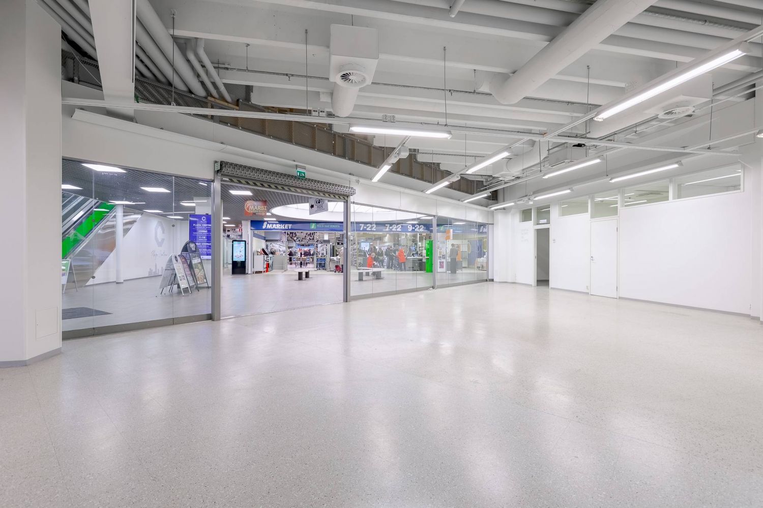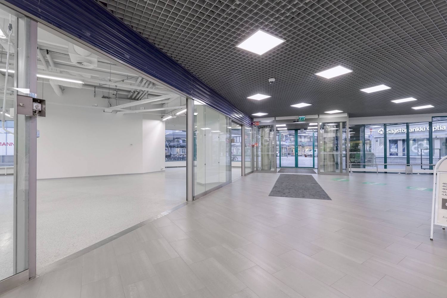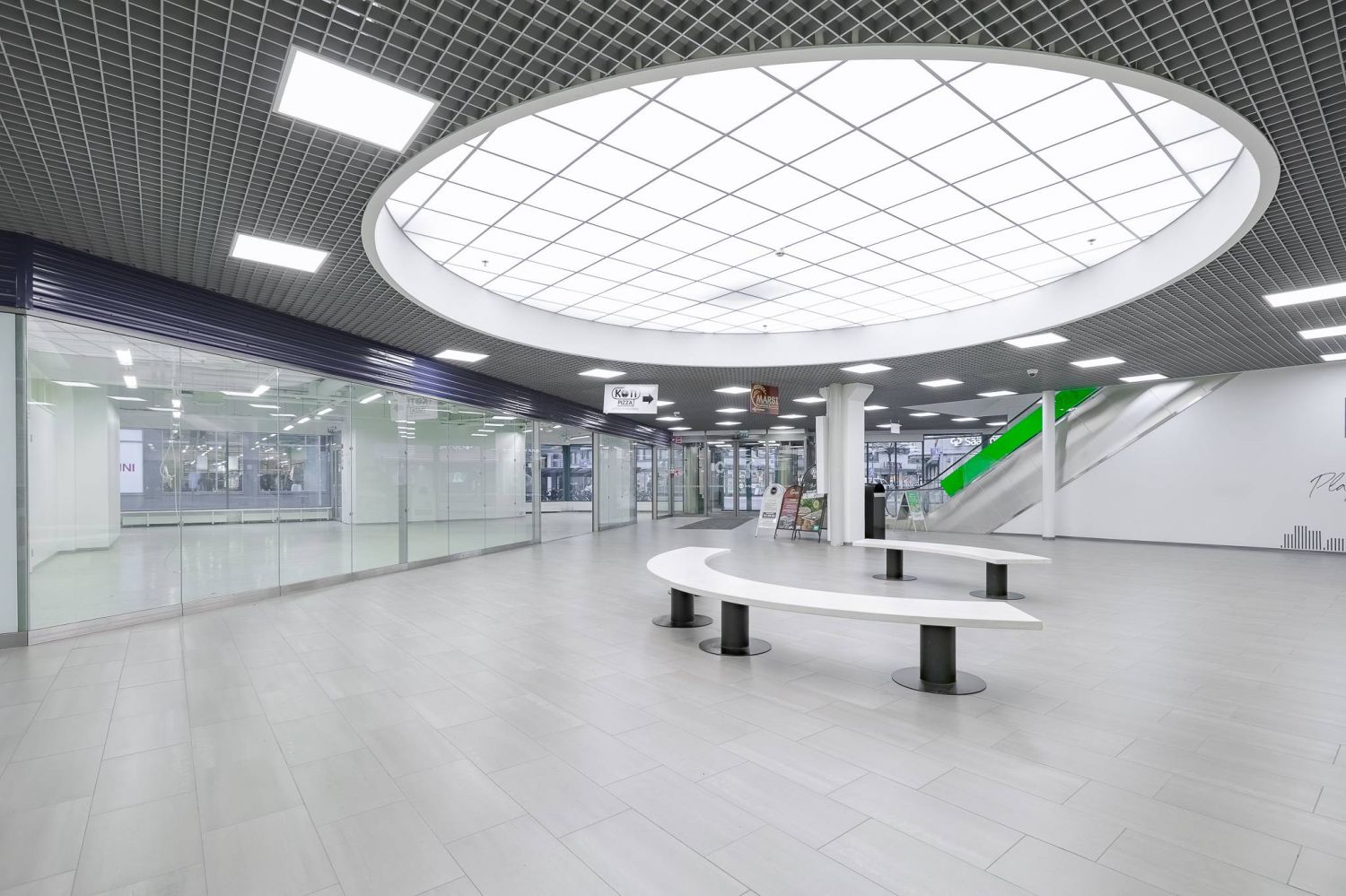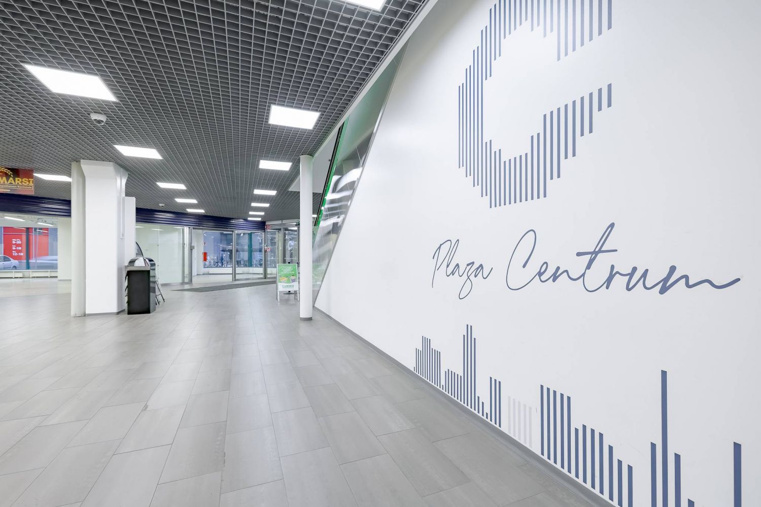 Plaza Centrum kulmaliiketila kävelykadun alkupäästä, Plaza Centrumin pääsisäänkäynnin vierestä.