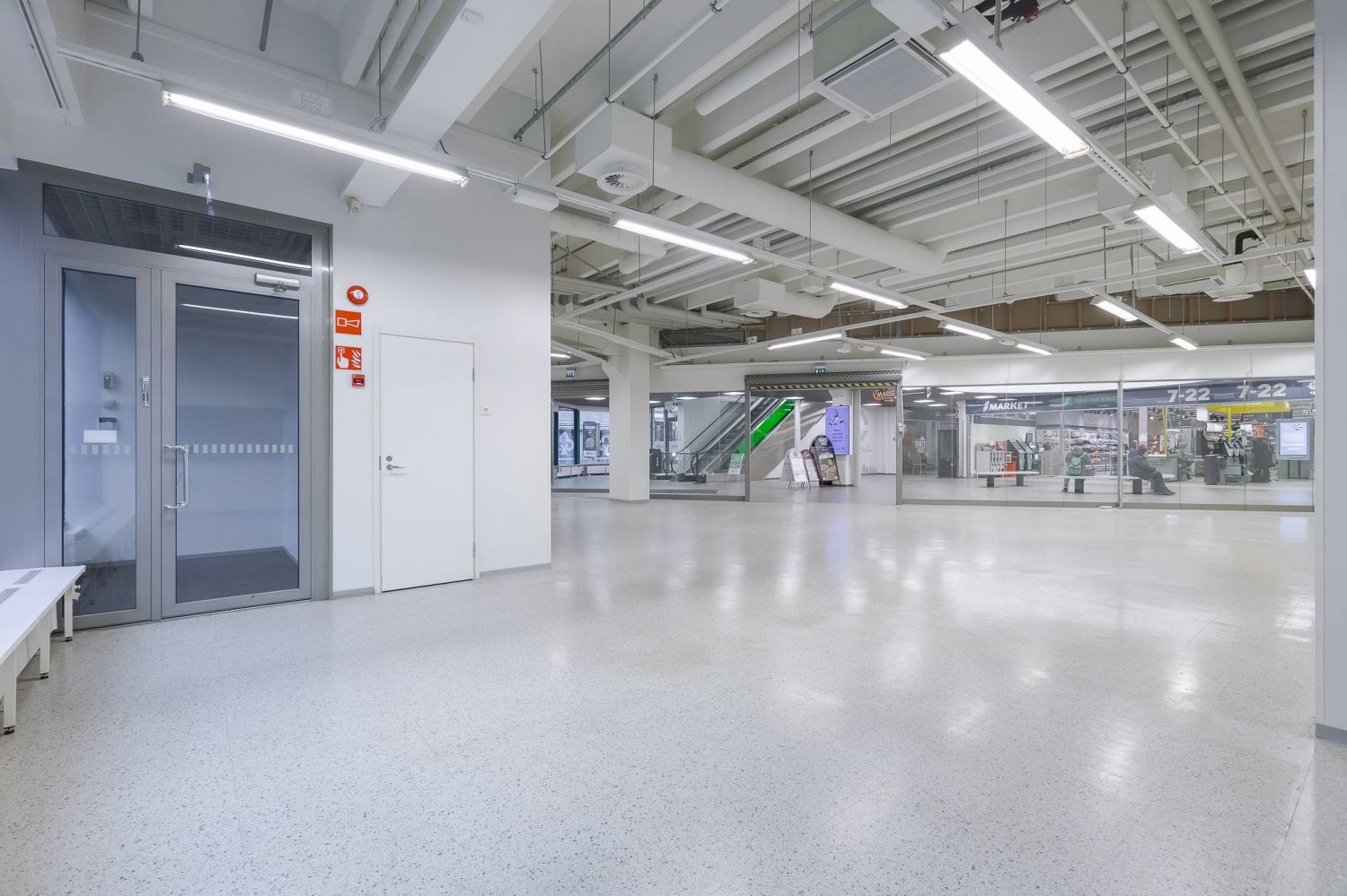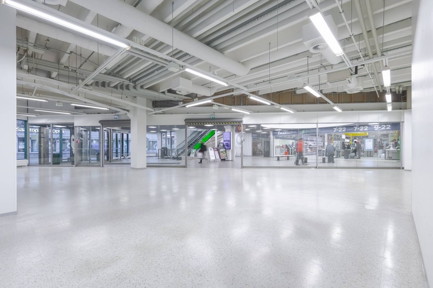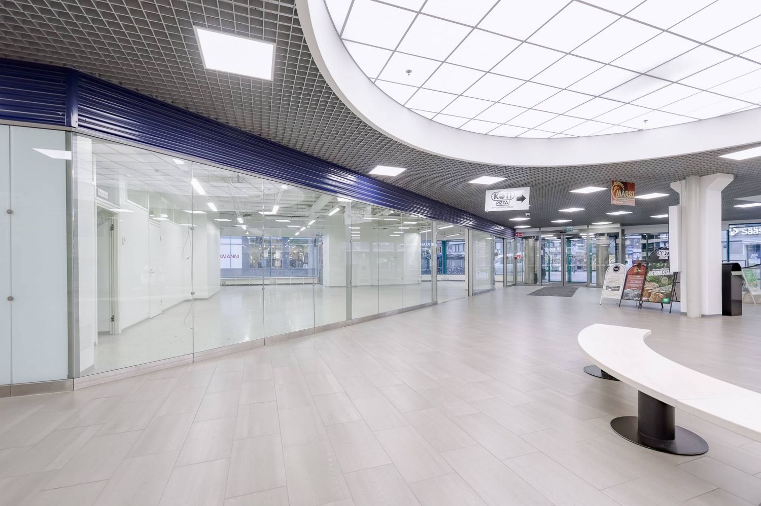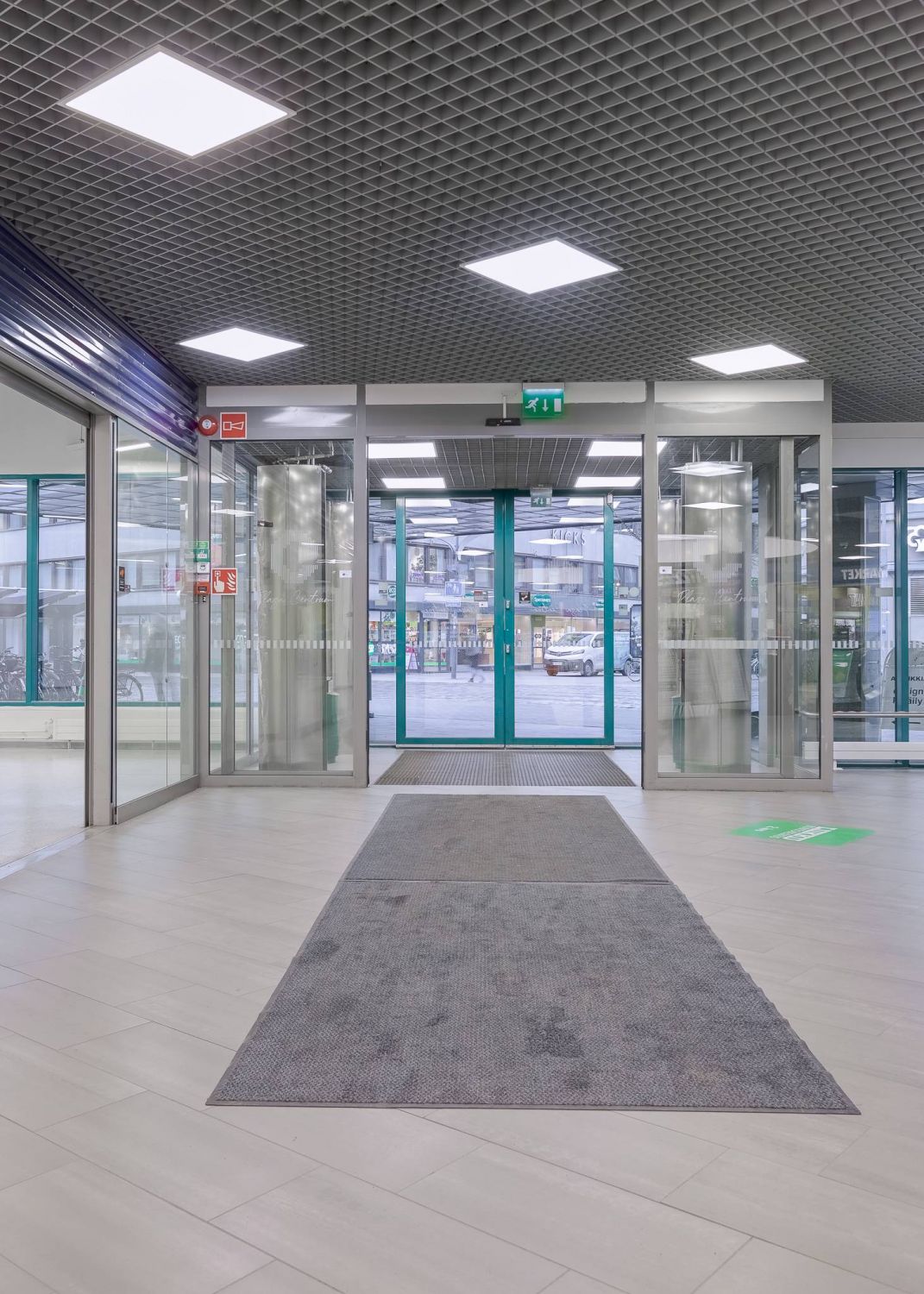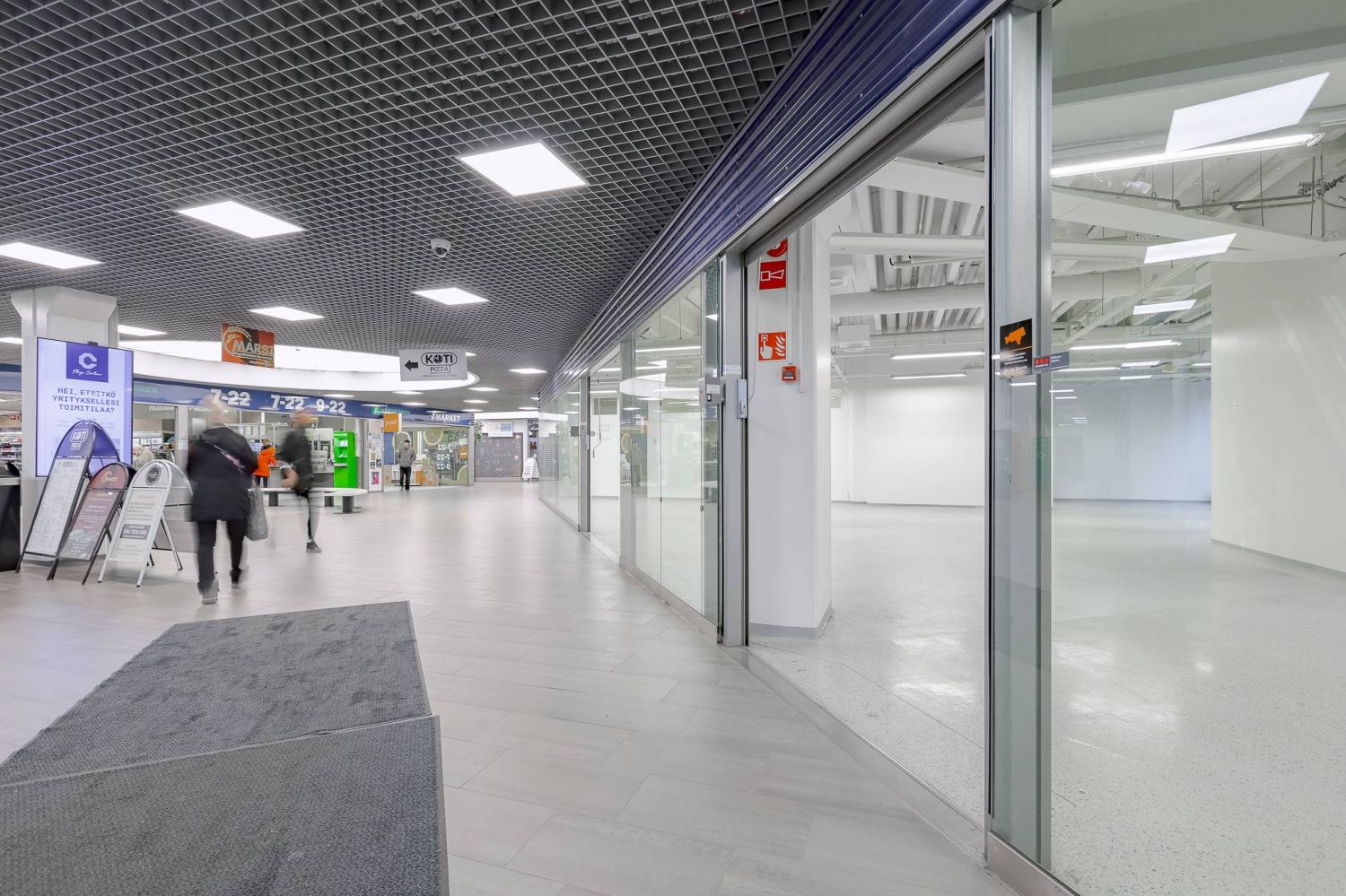 Plaza Centrum kulmaliiketila kävelykadun alkupäästä, Plaza Centrumin pääsisäänkäynnin vierestä.