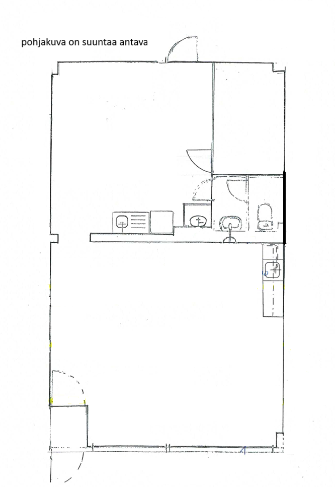 Tila on toiminut aiemmin parturi-kampaamona ja soveltuu hyvin samaan käyttöön tai muuhun palveluliiketoimintaan (ei kahvila/ravintola) tai vaikkapa toimistoksi. Seinät on maalattu ja isoimman huoneen lattia uusittu laminaatilla, kaapistot ovat vaaleita ja kokonaisuus on raikas ja moderni.