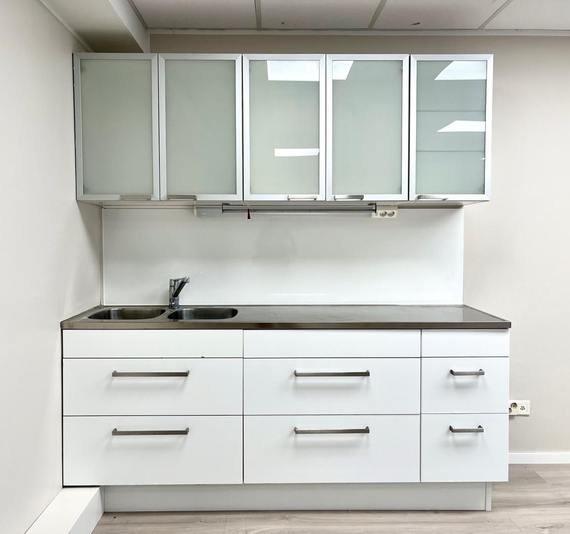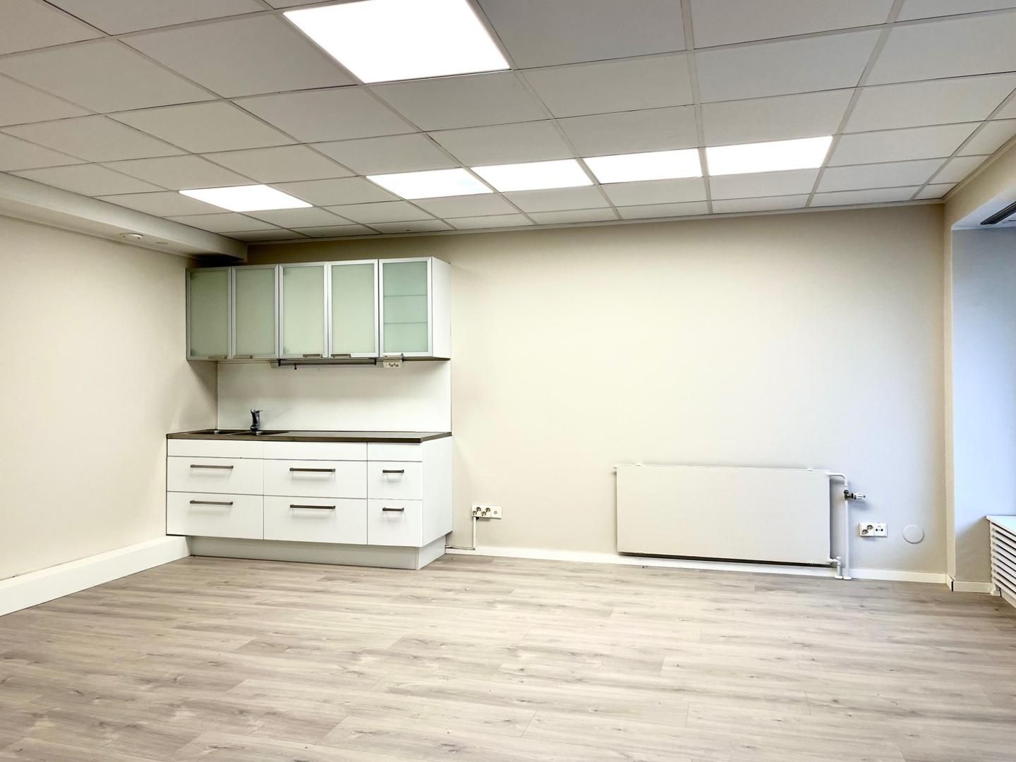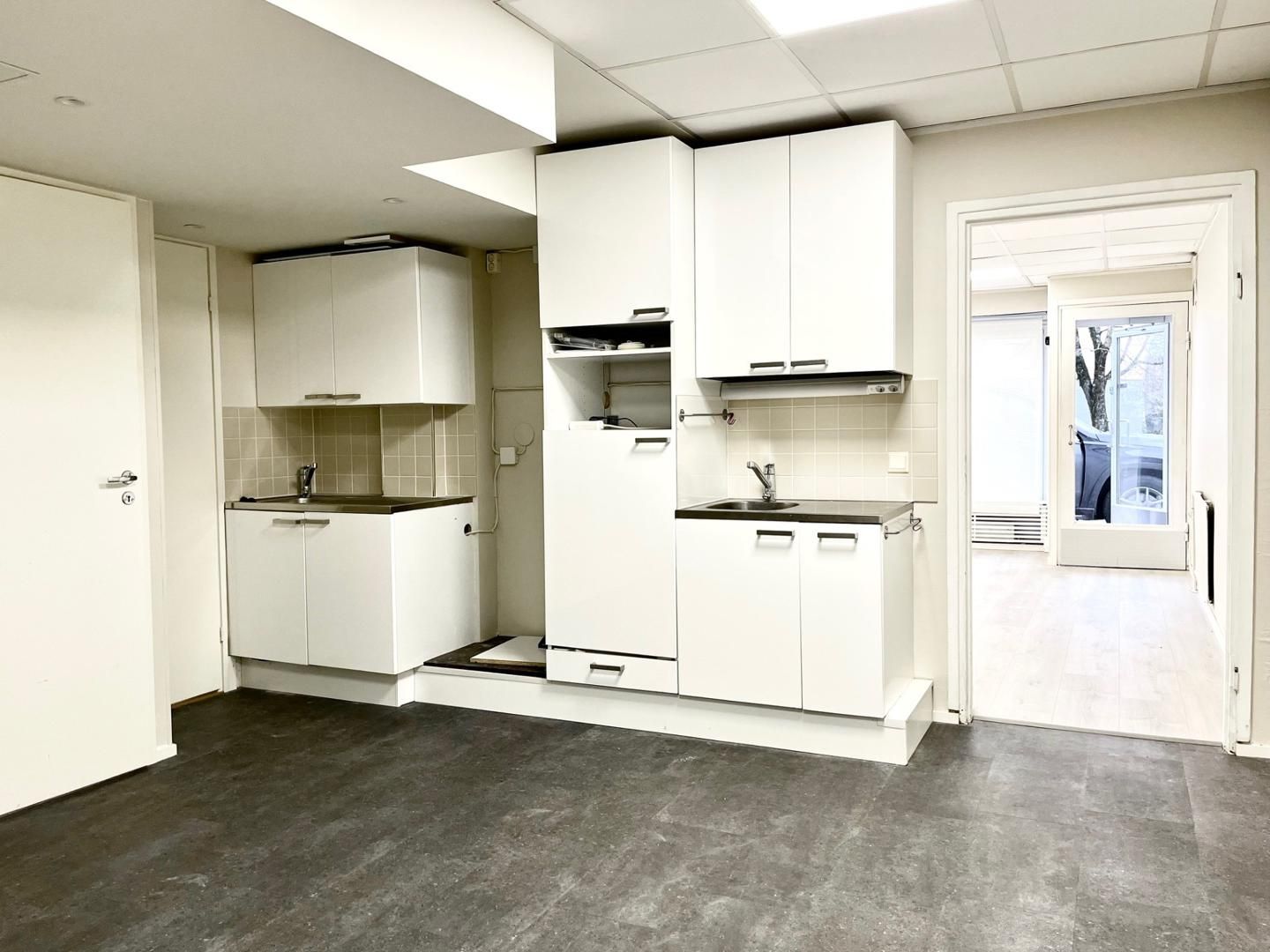 Tilassa on tuulikaappi, iso asiakastila vesipisteellä ja kaapistoilla, taaemmassa huoneessa keittiö jääkaapilla, kaksi vesipistettä, tilavaraus pyykinpesukoneelle sekä uloskäynti takapihalle ja WC-tilaan, joka on vaalea, laatoitettu ja uusittu putkiremontin yhteydessä. Lisäksi on pienempi huone, joka sopii esimerkiksi hoitohuoneeksi tai toimistoksi ja jossa on myös kaapisto.