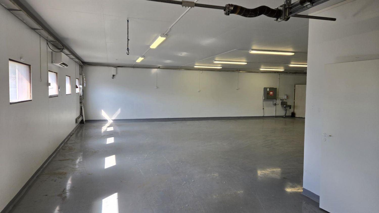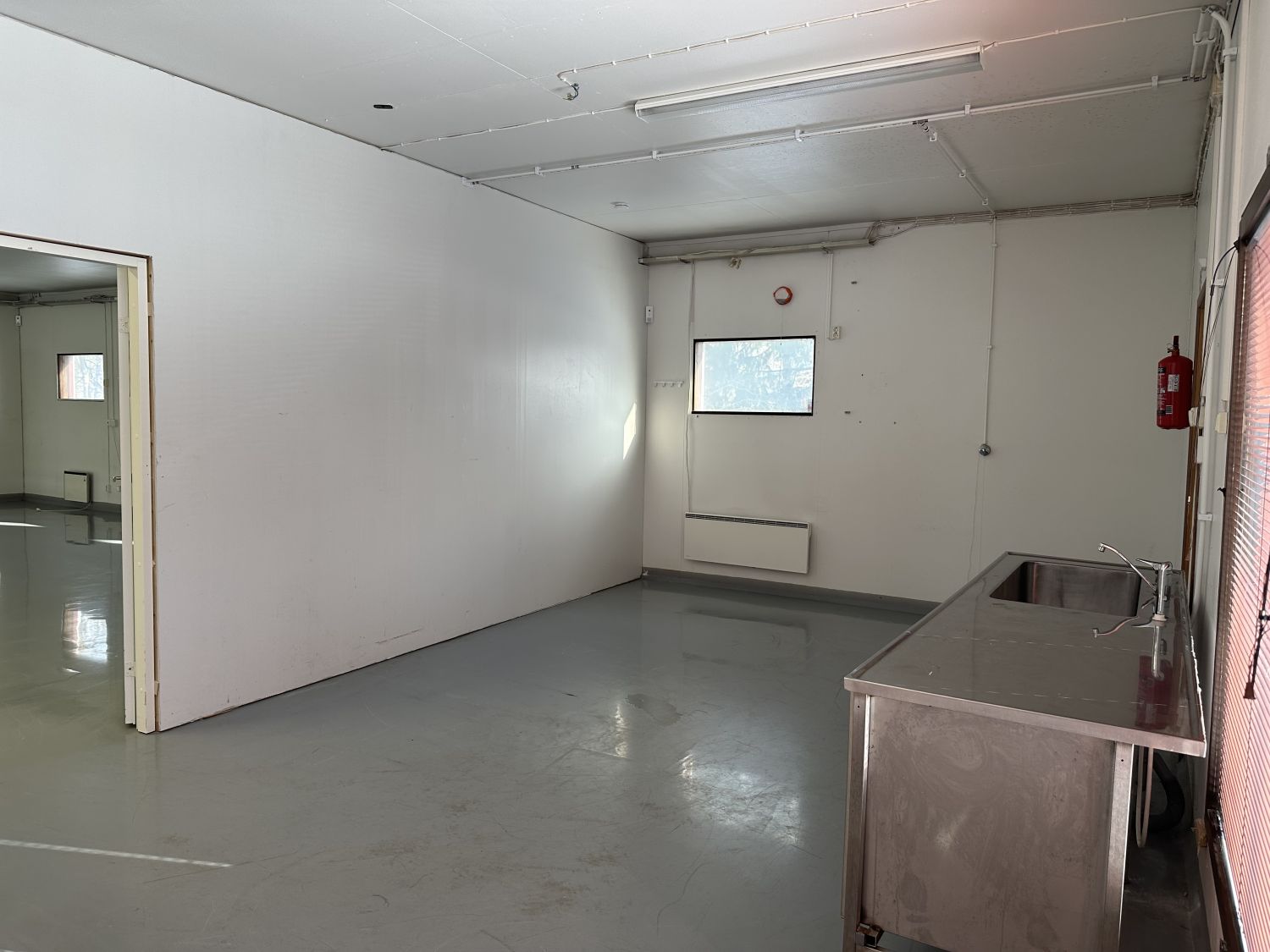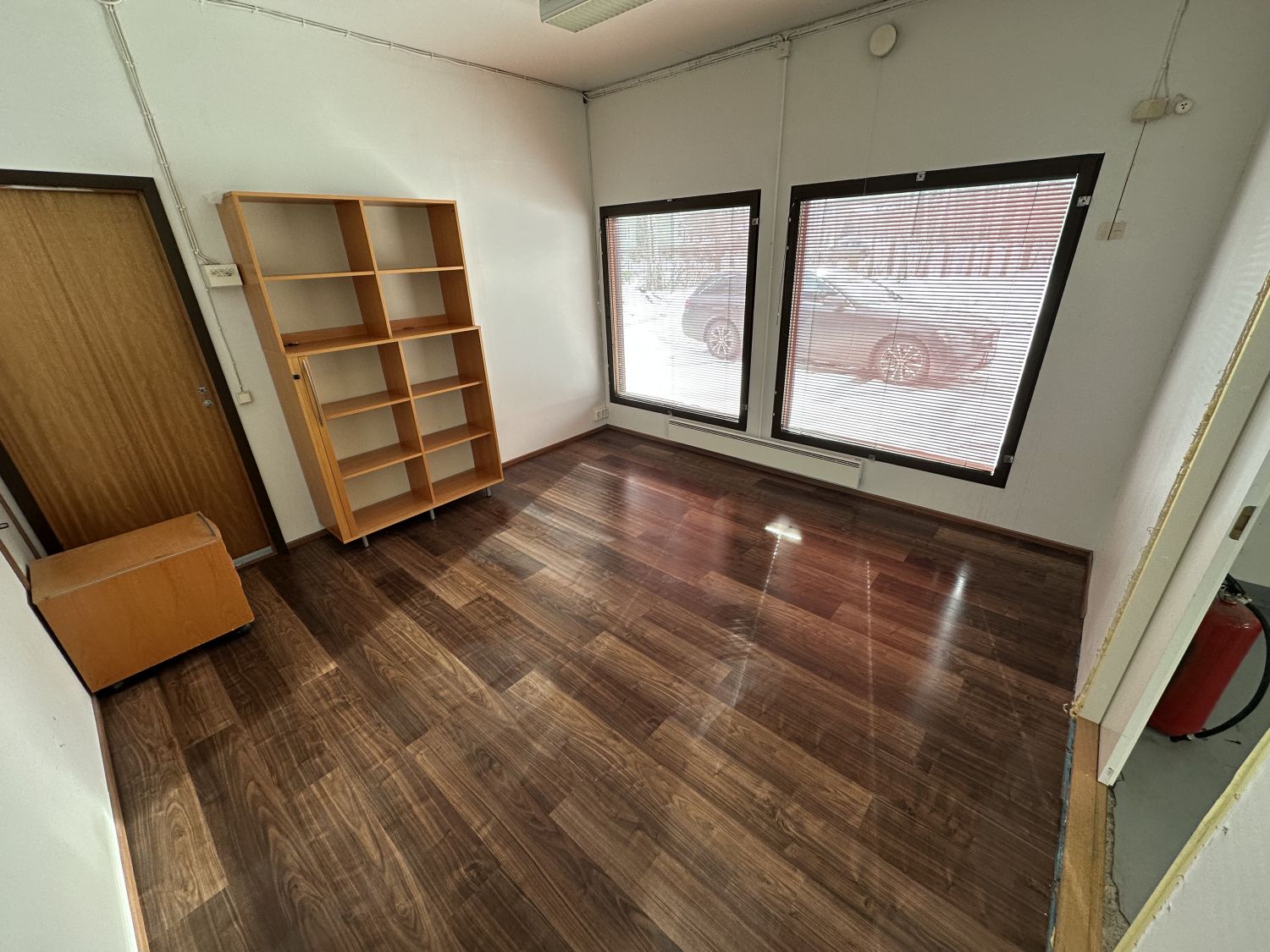 Varasto/tuotantotila 219 m2, asunto 50 m2 (2h,k,p,s), toimisto 44m2. Käyttämätöntä rakennusoikeutta 787 m2.