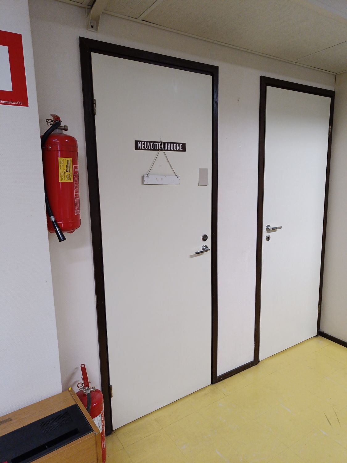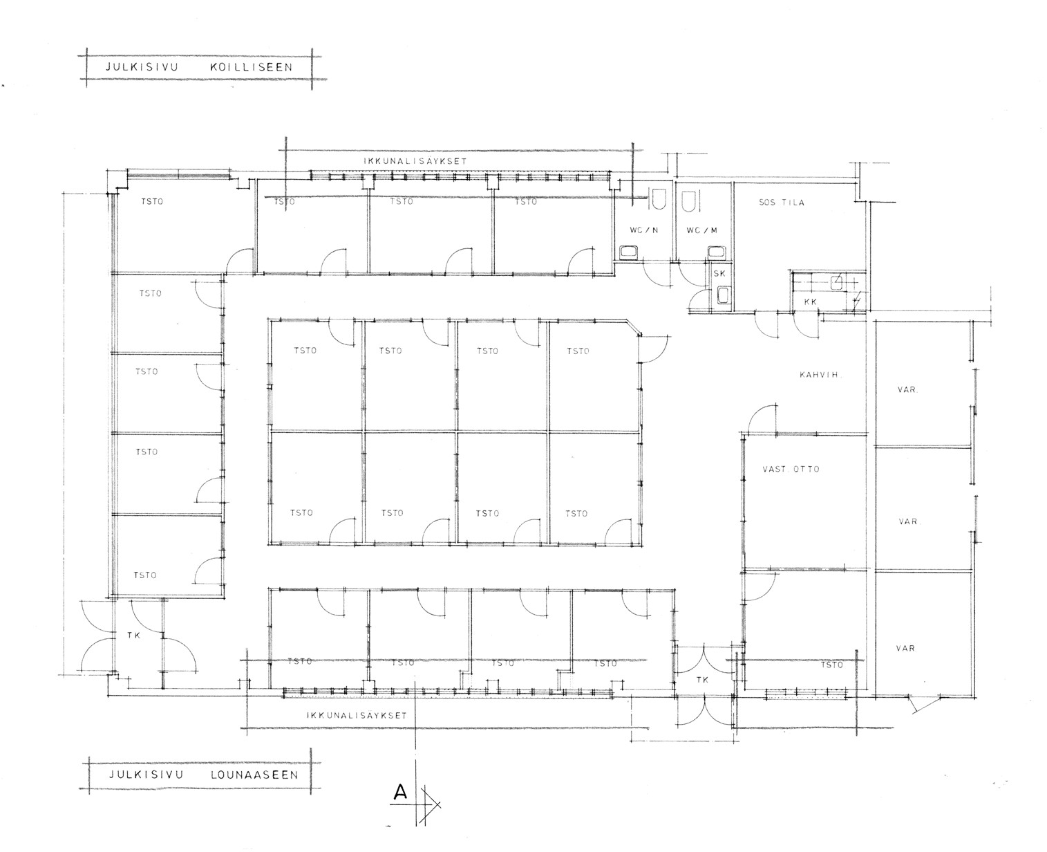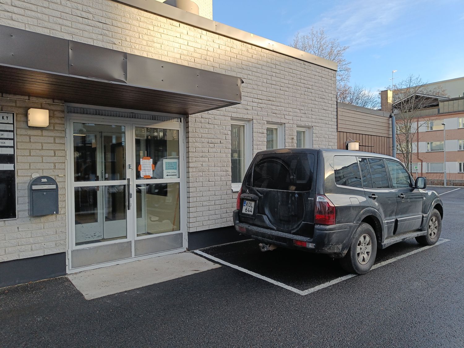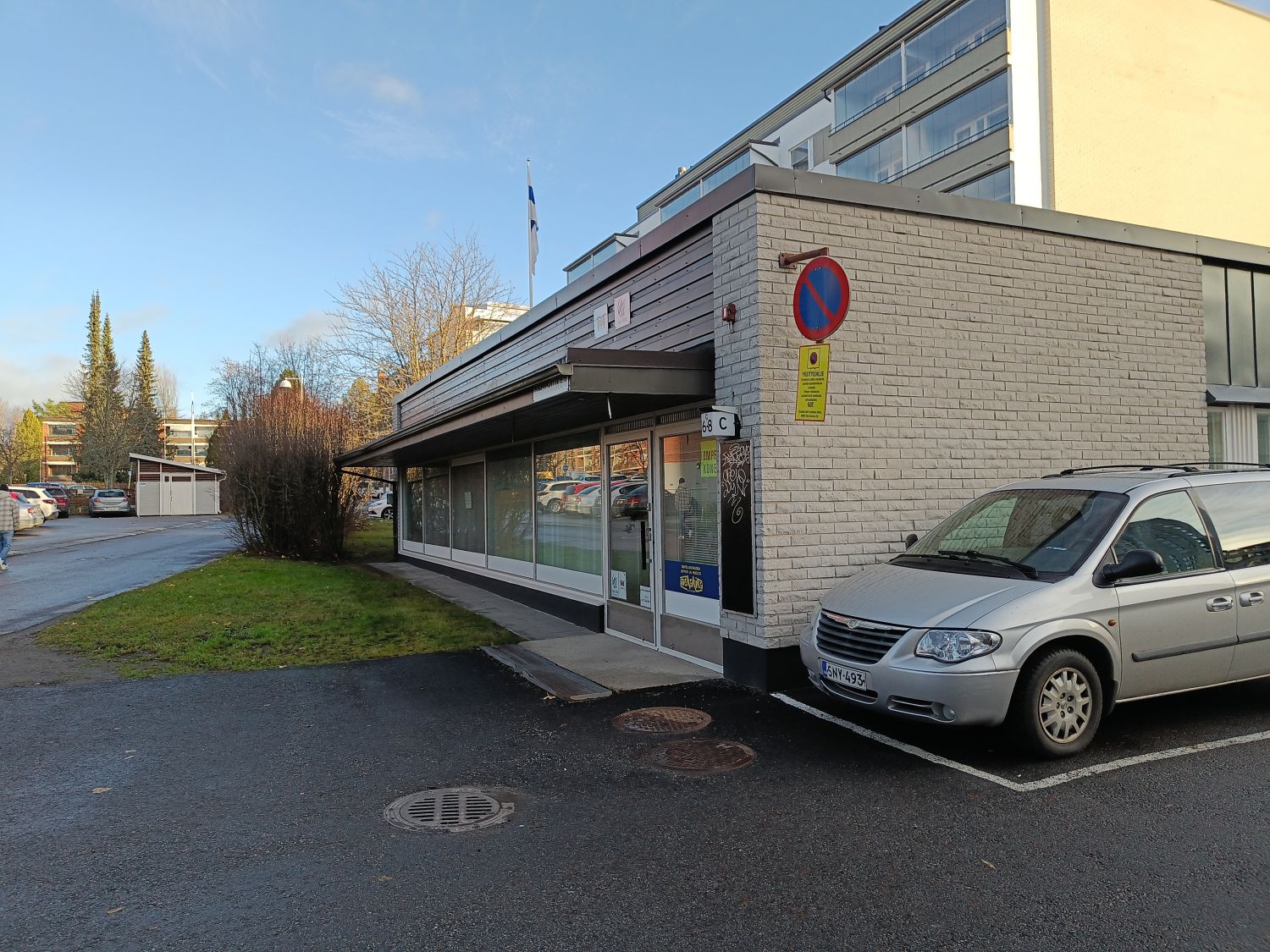 Tilaa on vuosien varrella saneerattu kaupasta toimistotiloiksi, julkisivua on vasta korjausmaalattu.