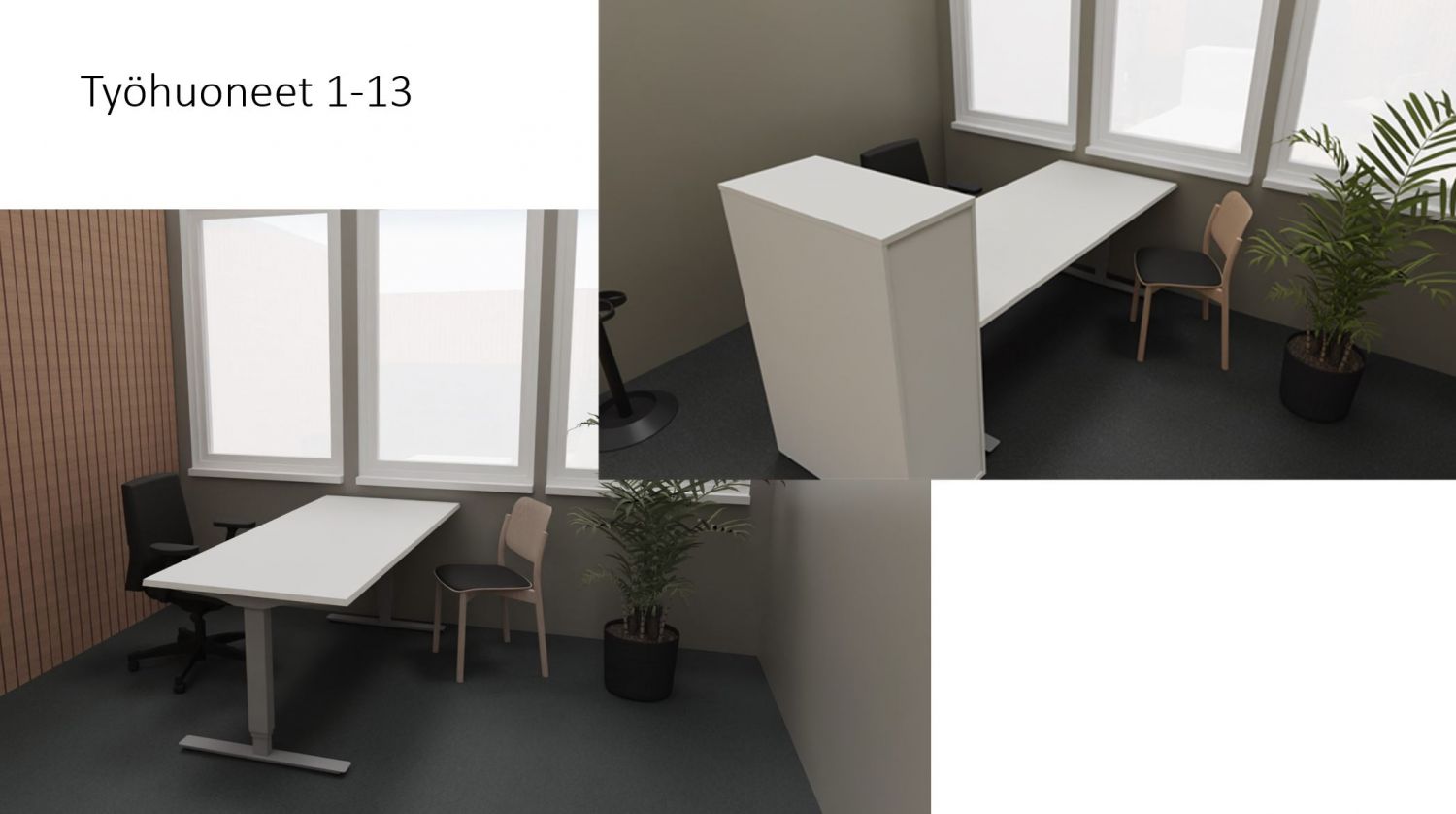 Keskustassa 400 m2 tila joka haettu tällä hetkellä huoneisiin kevytväliseinillä. Tilassa on yhteiskäytössä keittiö, neuvotteluhuone, kahvio, eteisaula, monitoimilaite, tuhooja. Tila on jaettavissa isompiin kokonaisuuksiin tai vuokrattavissa/ostettavissa kokonaan. Tila soveltuu toimisto ja moneen muuhun käyttöön loistavasti. Tarvittaessa voimme saneerata ja kalustaa tiloja aina avaimet käteen periaatteella asti. Lopussa visuaalikuvia joissa tiloja saneerattu tähän päivään.