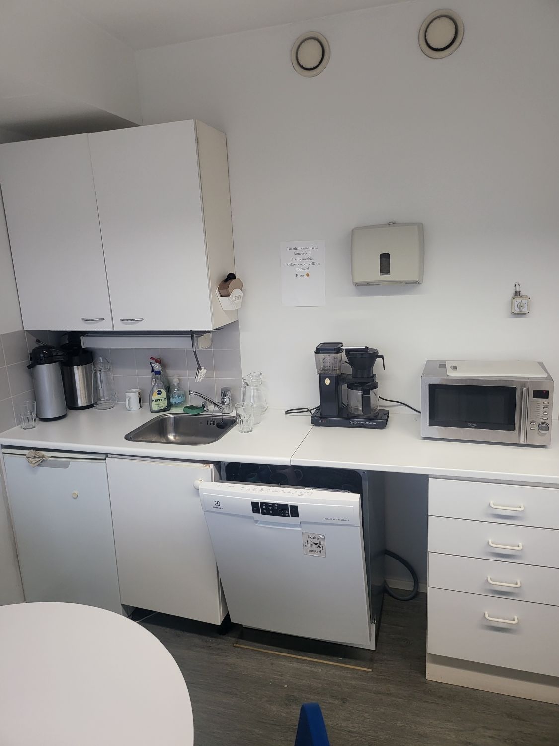 Keittiö on varusteltu hyvin ja soveltuu erinomaisesti toimistokäyttöön. Lisäksi tilassa on WC.