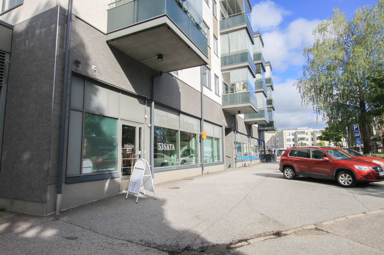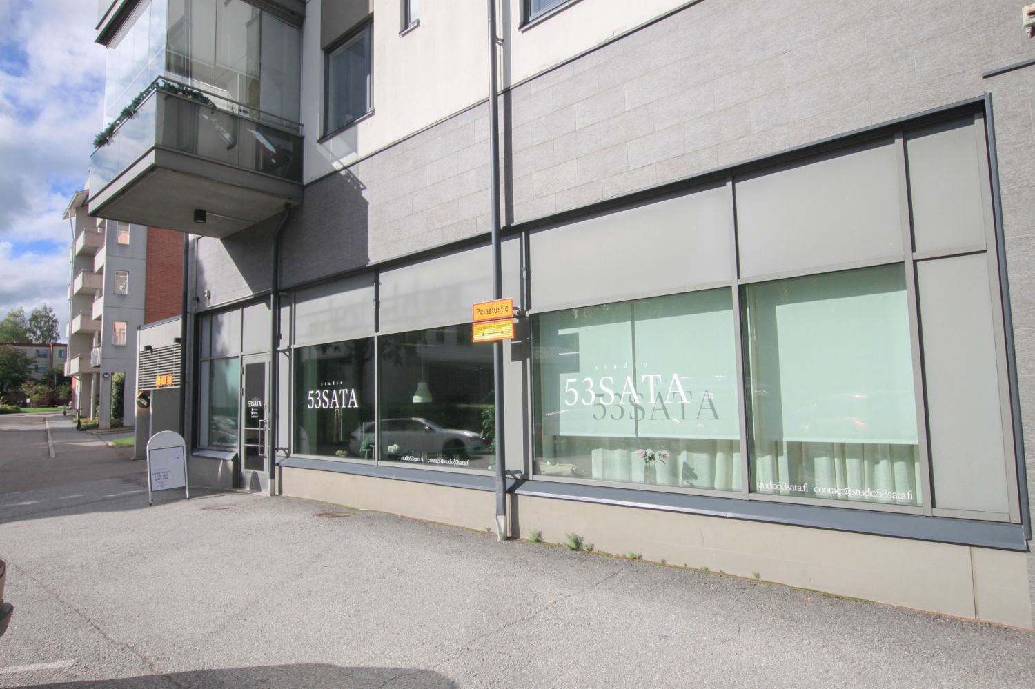 Tänne on helppo tulla ja erikseen on vuokrattavissa kaksi autopaikkaa tilan edestä, sekä tarvittaessa yksi autohallipaikka, josta pääsee suoraan hissillä liiketilaan.