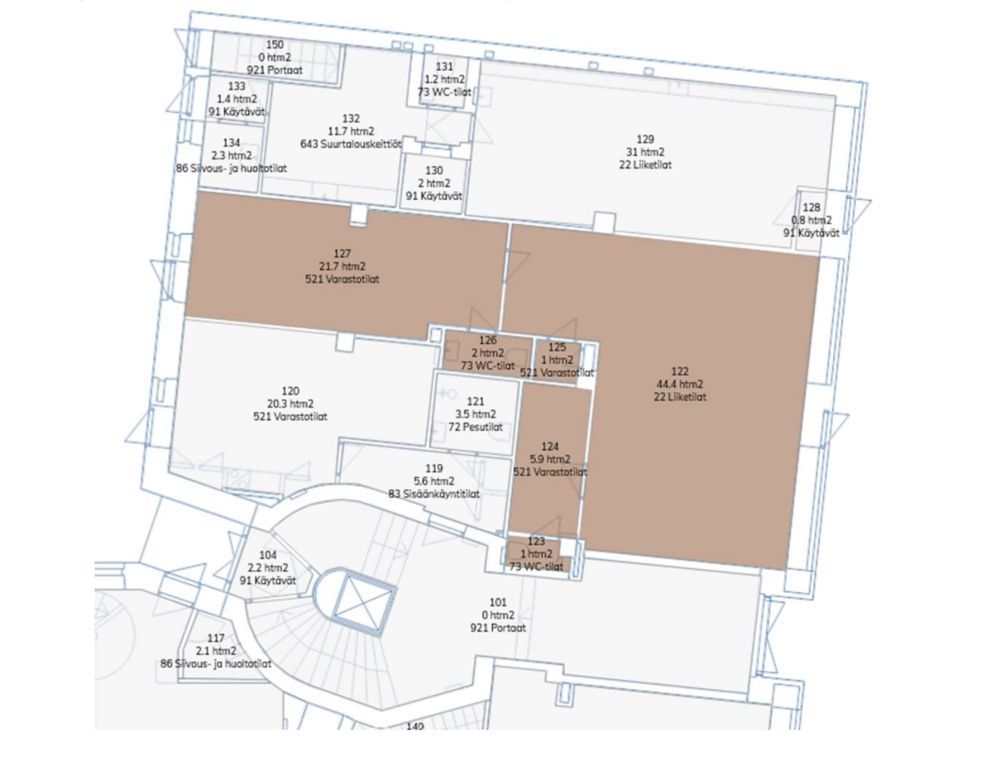 Tämä n. 75 m² liiketila koostuu 45 m² katutason liiketilasta, n. 28 m² varastotilasta sekä oheistiloista (minikeittiö, siivoustila ja wc:t). Tilaan on sisäänkäynti suoraan kadulta. Tilassa on toiminut aiemmin R-Kioski.