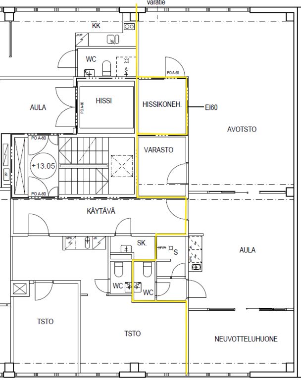 Tämä 100 m² toimistotila sijaitsee kiinteistön 3. kerroksessa. Toimistossa on avotilaa, neuvotteluhuone, pieni varastotila, oma keittiö, wc-tilat ja suihku. Tila on hyvässä kunnossa. Vapautuminen 1.2.2026.