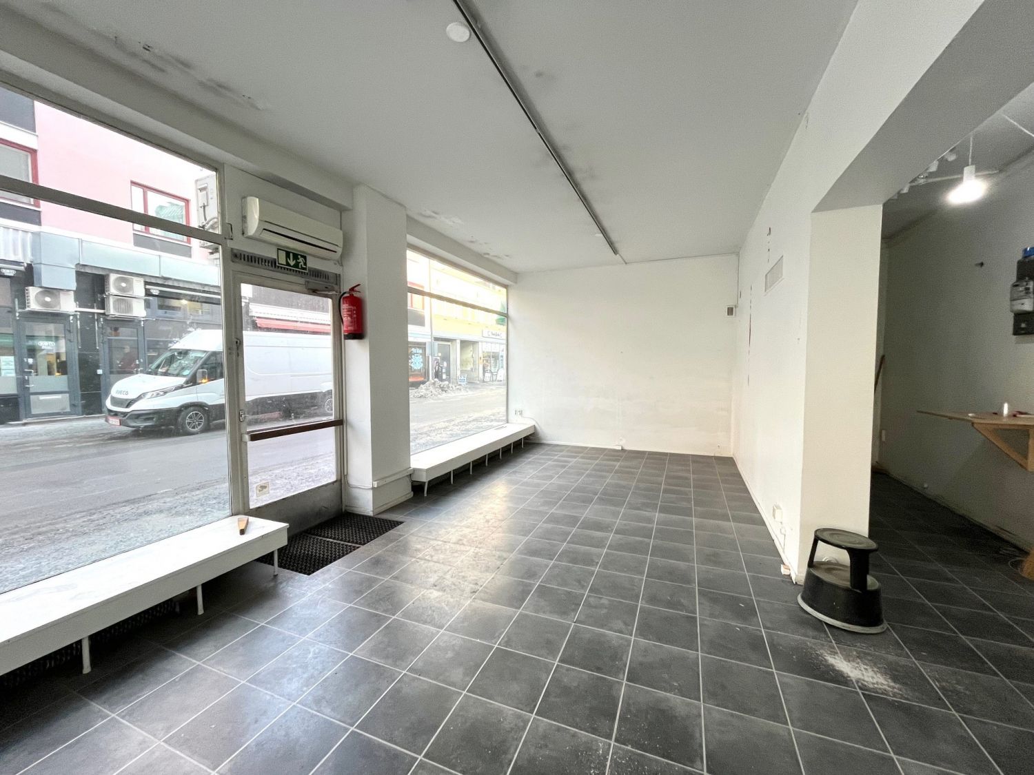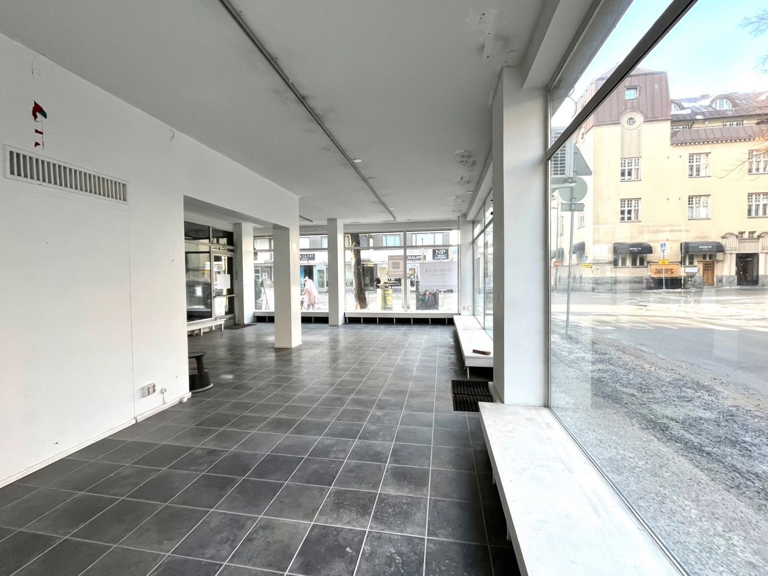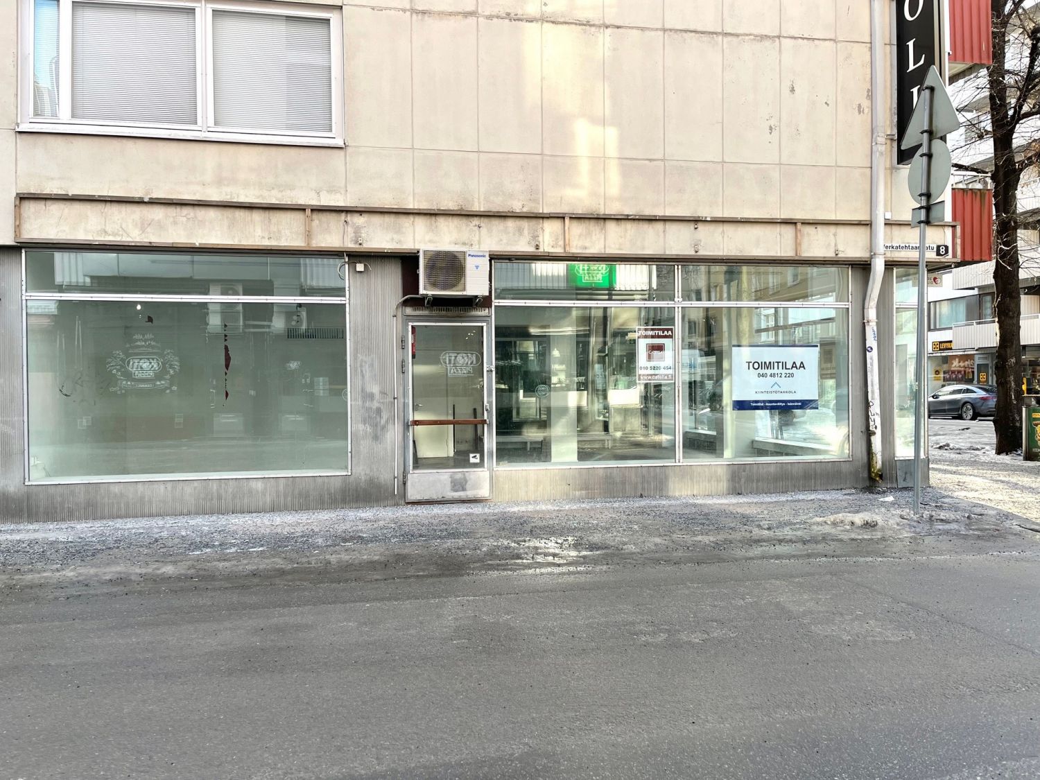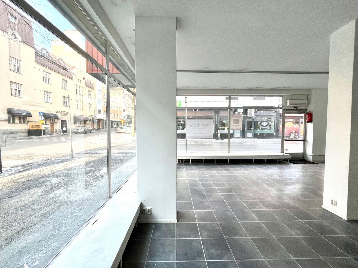 Aleksanterinkadun ja Verkatehtaankadun kulmassa, Pizzeria Napolin naapurissa, liiketila vapaana.