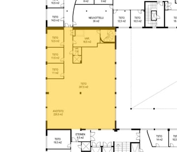 Nyt vuokrattavissa kompakti toimistotila rakennuksen kolmannessa kerroksessa. Tila on muokattavissa ja tilaa voidaan suurentaa yhdistämällä se suurempiin kokonaisuuksiin. Tila sisältää sekä yksittäisiä toimistohuoneita että runsaasti avointa tilaa.