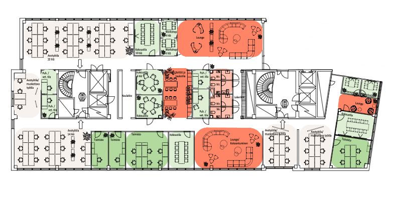 Modernia toimistotilaa Vallilan Pikselissä Helsingissä.