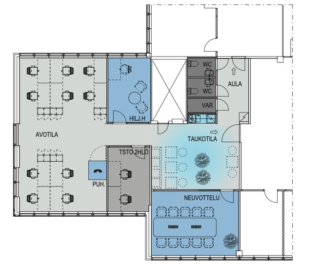 Tämä 145 m² toimistotila sijaitsee Nova-talon 2. kerroksessa. Toimistossa on huoneita, avotilaa sekä omat keittiö- ja wc-tilat.