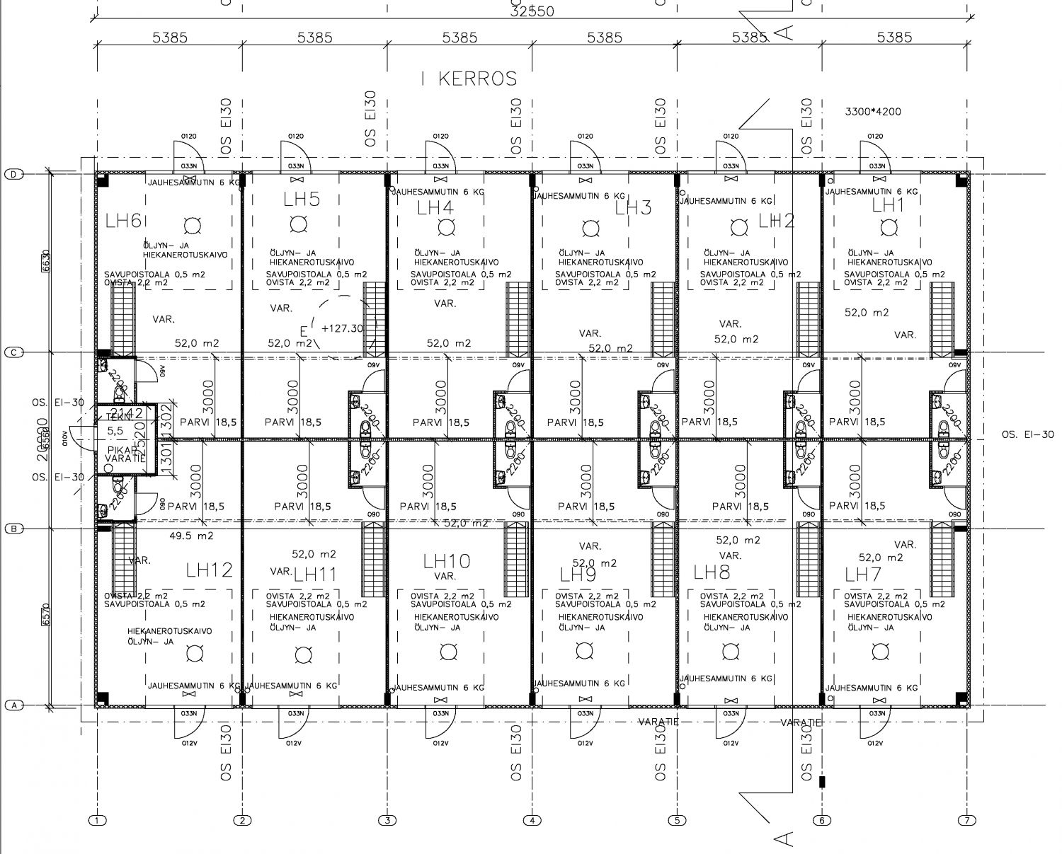 • Hallin korkeus keskellä 6,5 m, reunoilla 4,8 m