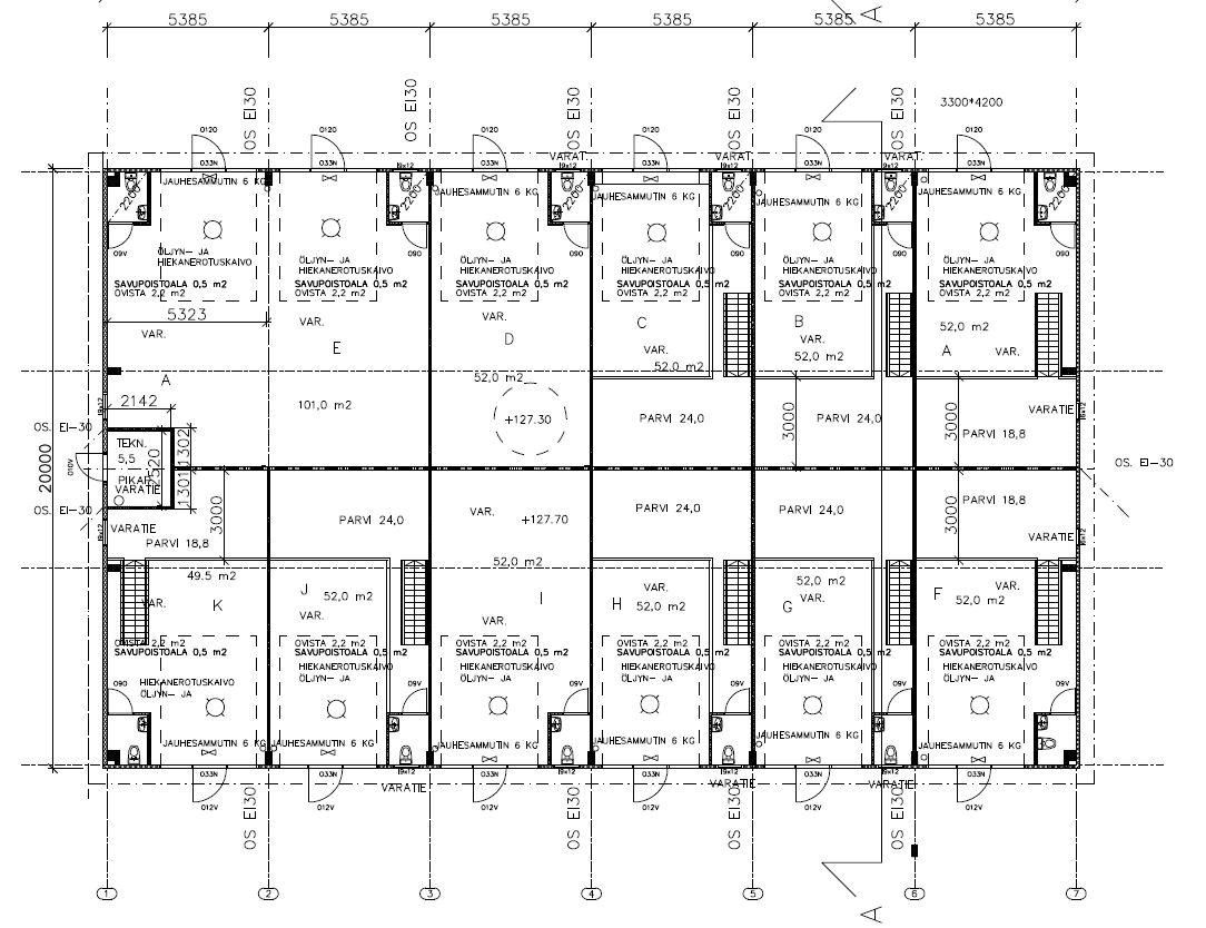 76,0 m2 = 52,0 m2 + 24,0 m2 parvi, yritykset: 495 €/kk + ALV --> yksityiset: 545 €/kk