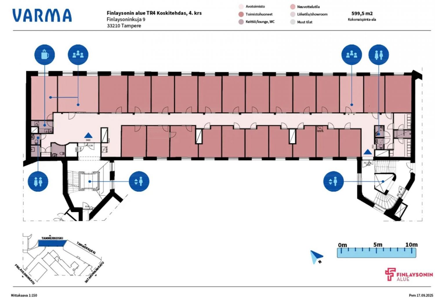 Vuokrataan Tampereen keskustasta Finlaysonin alueelta 599,5 m² toimistotila koskinäkymin.
