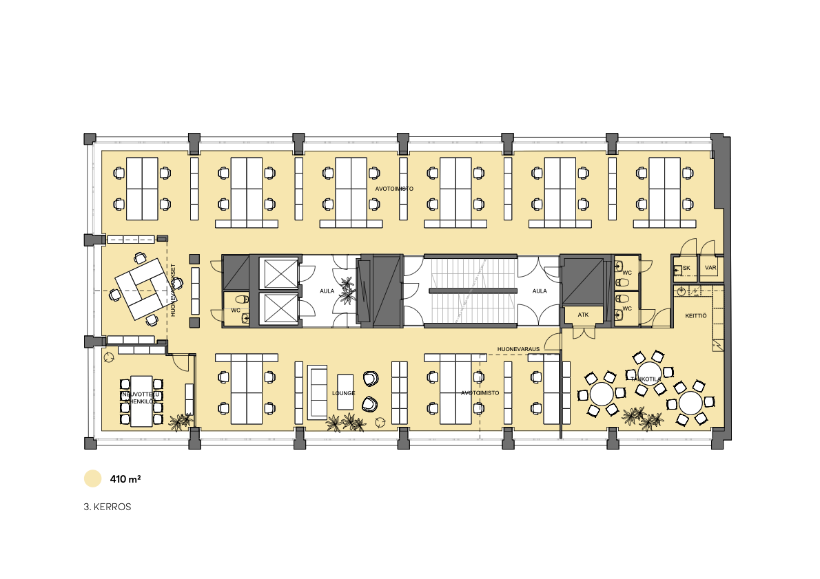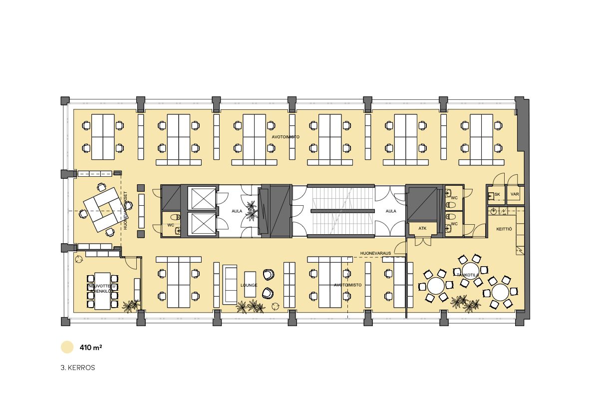Perinteikkääseen 60-luvun kiinteistöön on remontoitu moderneja ja muunneltavia toimitiloja, jotka täyttävät vaativammatkin tarpeet. Näissä toimistoissa on hyvää arjen fiilistä runsain mitoin, ikkunoista aukeaa avarat näkymät naapuruston puistoihin ja kaupungin kattojen ylle. Rakennuksen aikakauden tyyliin juuri remontoidut aulatilat toivottavat tulijan tervetulleeksi heti ulko-ovesta sisään astuttaessa.