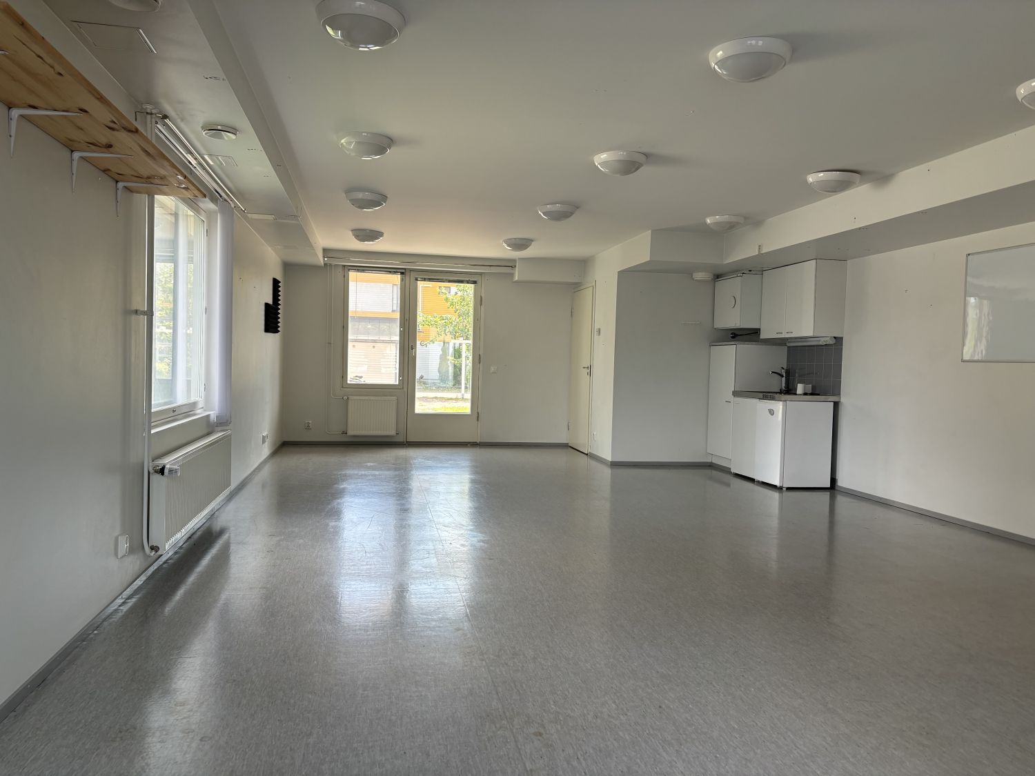 Tila on avointa tilaa, jossa minikeittiö sekä WC.