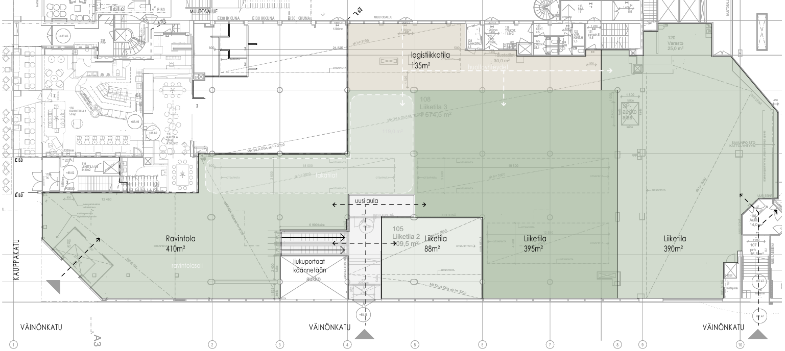 Vuokrataan Jyväskylän ydinkeskustasta yhteensä n. 1330 m2 valoisaa liike - / myymälätilaa erinomaiselta paikalta Kauppakulmasta. Kyseinen liiketila on aiemmin palvellut vaateliike Halosta, ja liiketilassa on paljon näyteikkunatilaa Väinönkadun suuntaan.