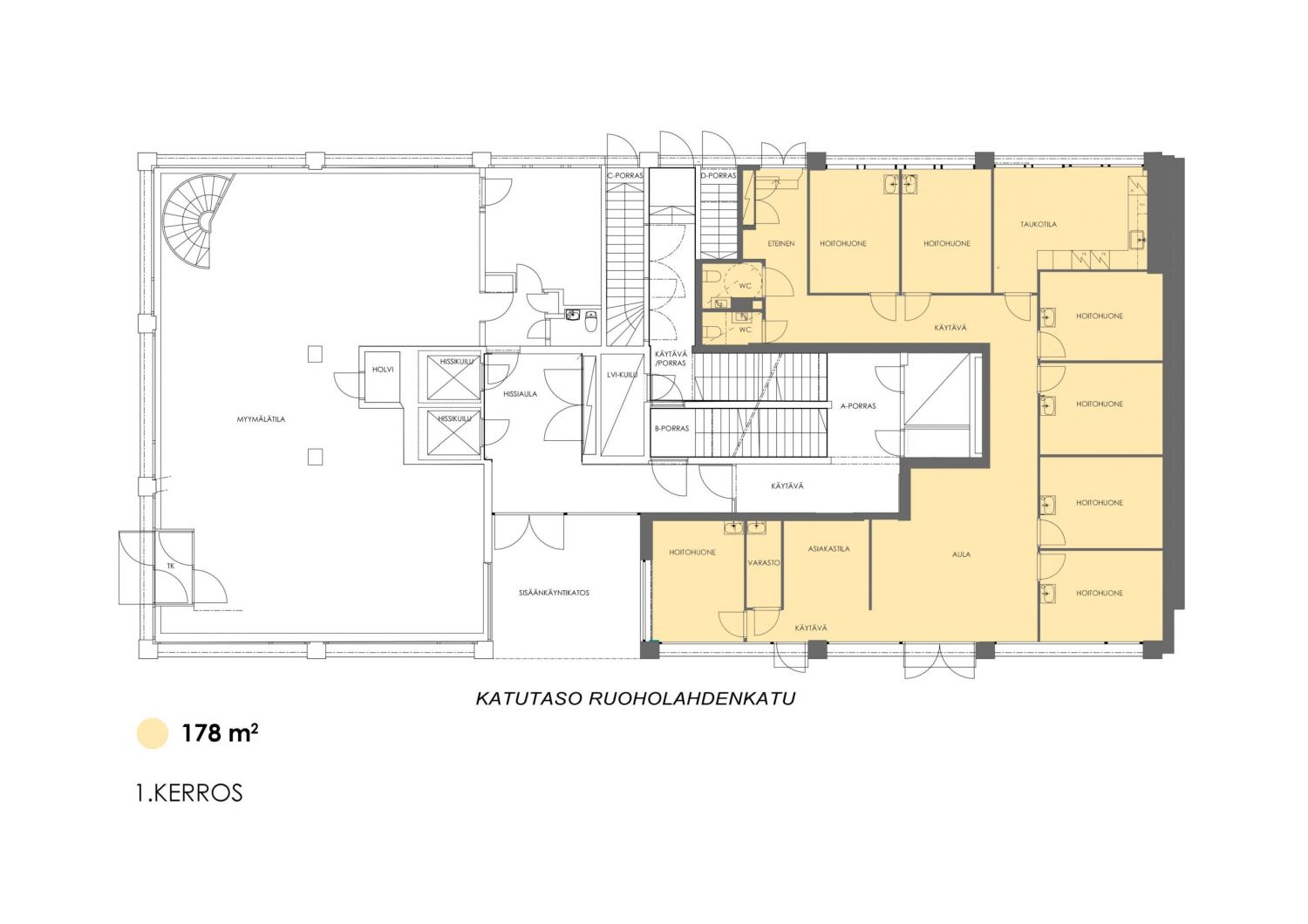 Nyt vapautumassa valoisa liiketila vilkkaan Ruoholahdenkadun varrella. Liiketilassa on taukotilan ja vastaanottoaulan lisäksi seitsemän vesipisteellistä vastaanottohuonetta, joiden ansiosta tila soveltuu erityisen hyvin esimerkiksi erilaiseen kauneudenhoito- ja hyvinvointialan liiketoimintaan.