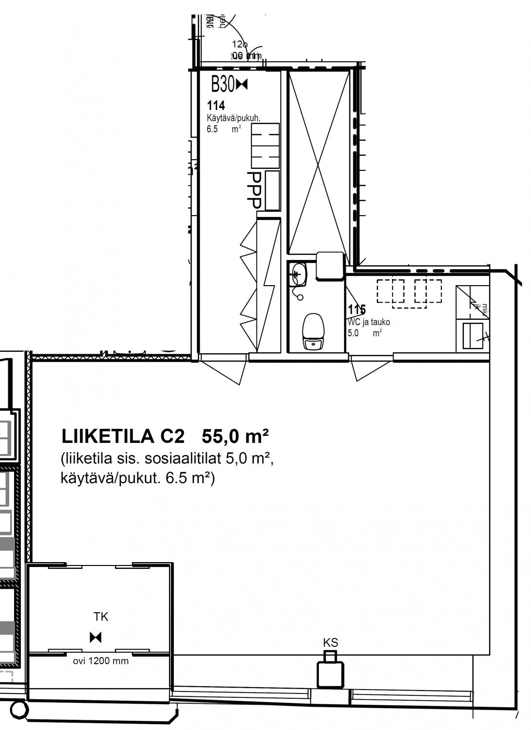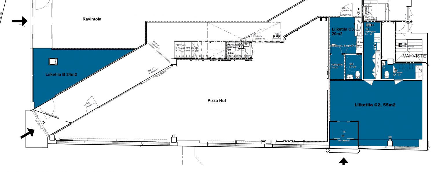 - Liiketila C2, 55m2, tyylikäs liiketila tai toimisto, johon käynti Saaristonkadulta. Isot ikkunat pitävät huolen siitä, että tämä tila huomataan!