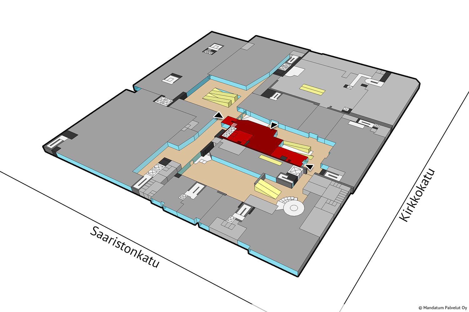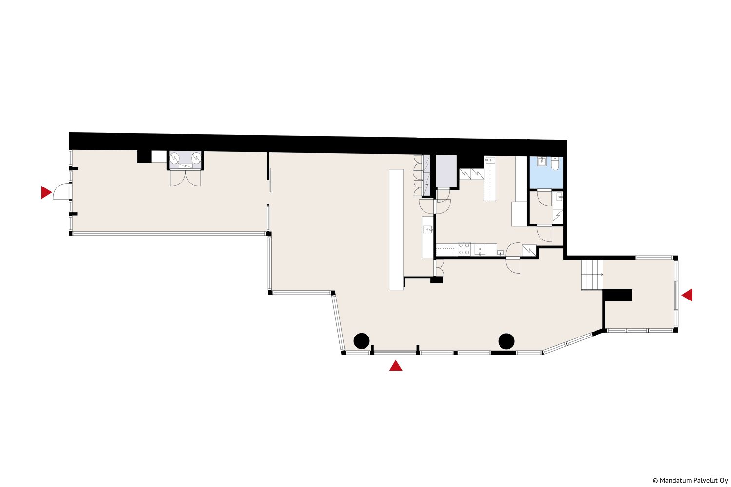 Juuri ravintolakäytöstä vapautunut edustava toisen kerroksen tila. Huoneisto käsittää ravintolakeittiön, ravintolasalin ja kabinetin, jota voidaan vuokrata myös ravintolatilasta erillisenä tilana. Keittiön talotekniikka ei mahdollista täysipainoisen ruokaravintolan toimintaa. Se soveltuu esimerkiksi kahvila- salaattiravintolaksi. Tila voidaan tarvittaessa vuokrata kalustettuna ja keittiölaitteineen.