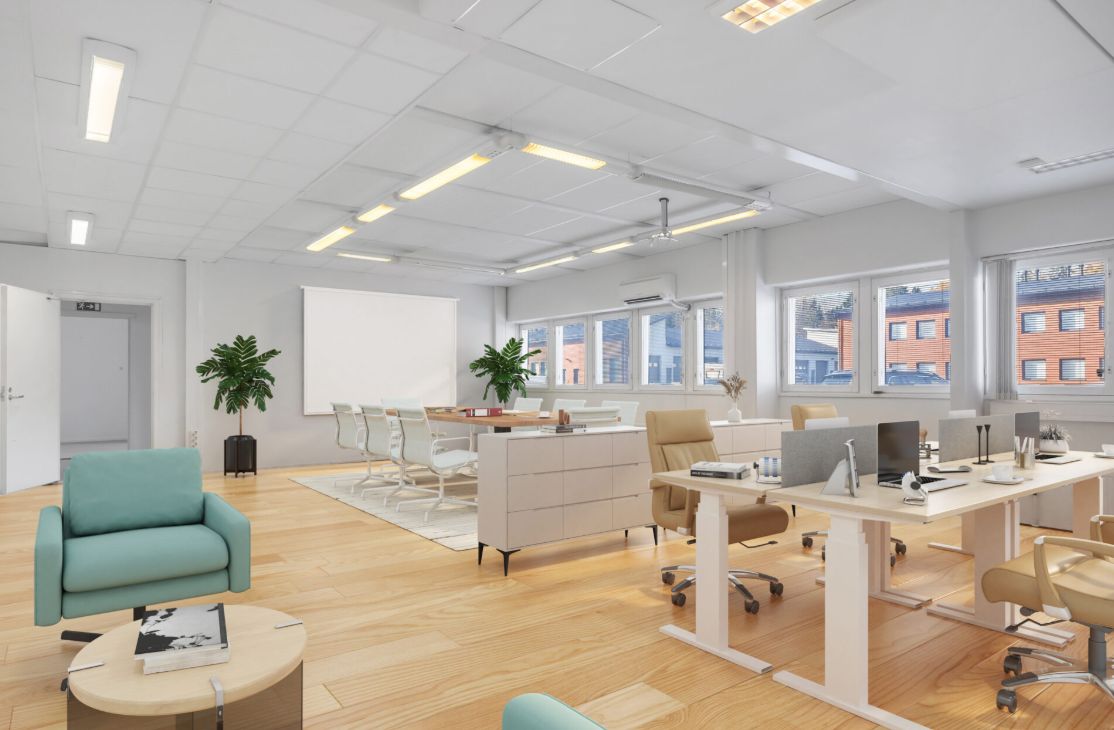Vuokrattavana toimistotilaa, joka sijaitsee kiinteistön toisessa kerroksessa.