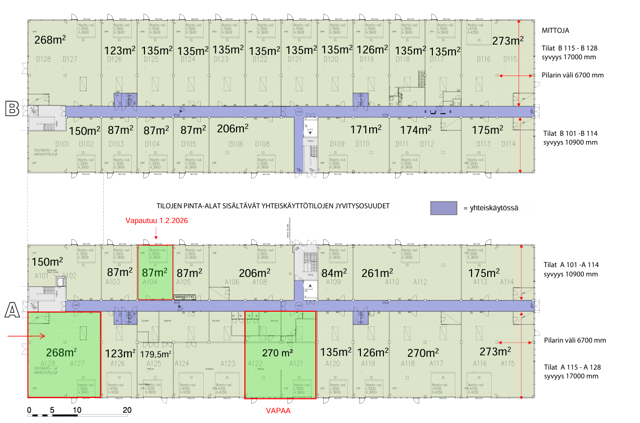 Katutasossa avarat varasto- ja tuotantotilat, joissa on voimavirta, vesipiste ja lattiakaivo