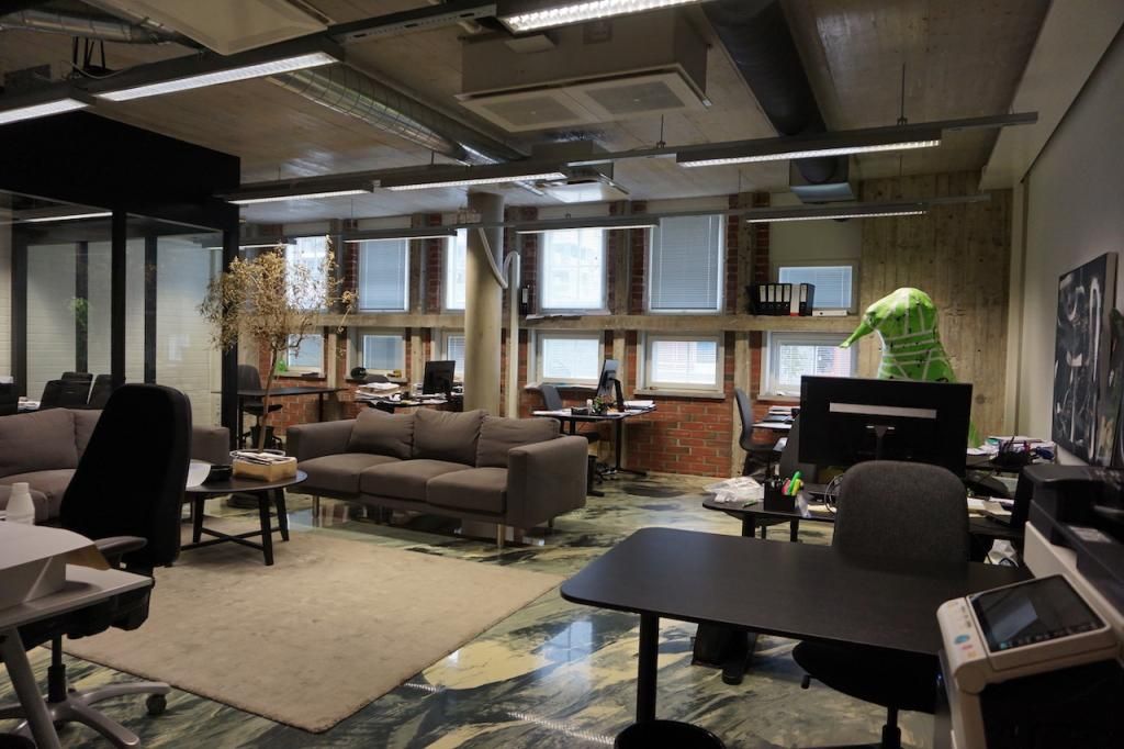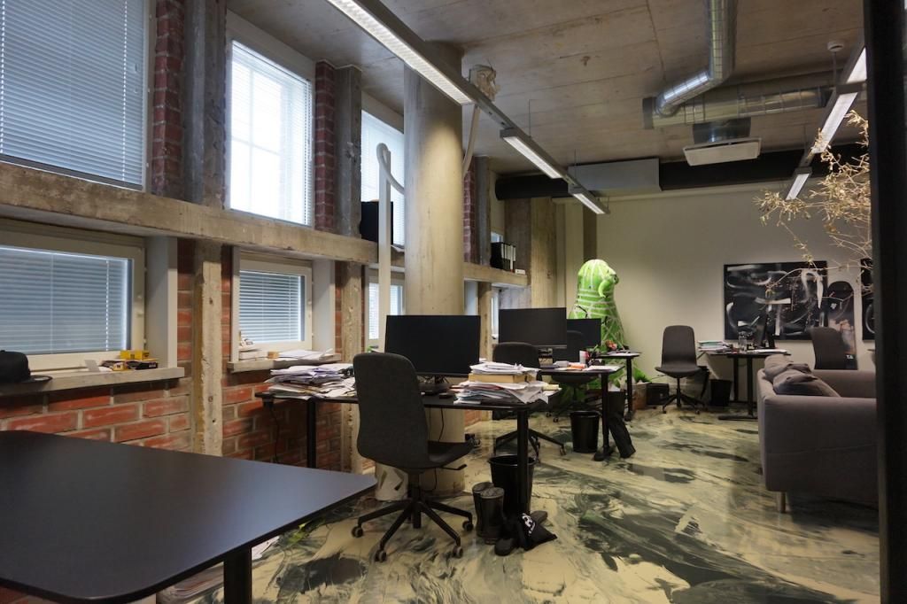 Katutasossa sijaitseva huoneisto on avointa toimisto- tai näyttelytilaa. Tilassa on lasiseinäinen neuvotteluhuone, kaksi wc:tä ja keittiö. Huoneisto on pinnoiltaan erittäin näyttävä kuvioituine epoxilattioineen. Tila on viilennetty. Tällä hetkellä huoneistossa on ollut 7-9 työpistettä.