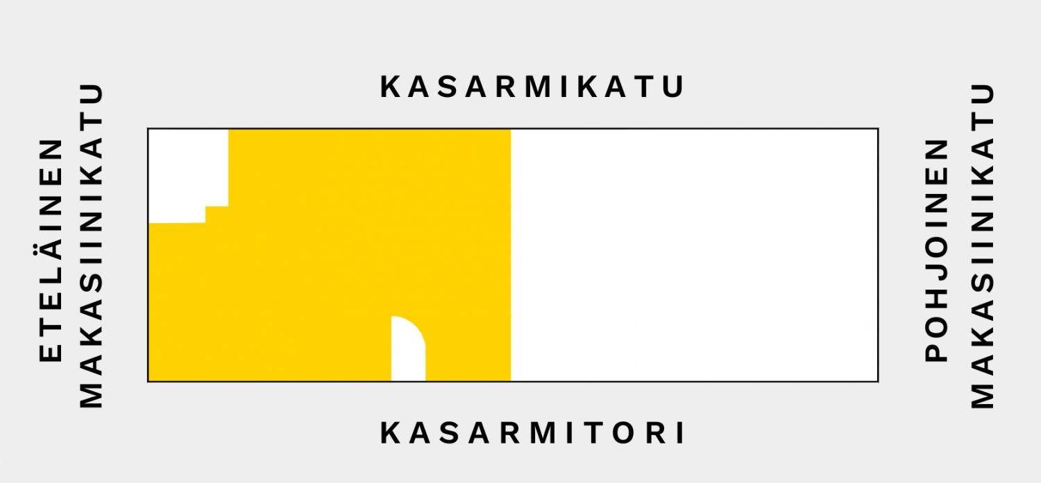 Tarjolla monipuolinen, kahdesta liiketilasta muodostuva kokonaisuus avaralla näkymällä Kasarmitorille.