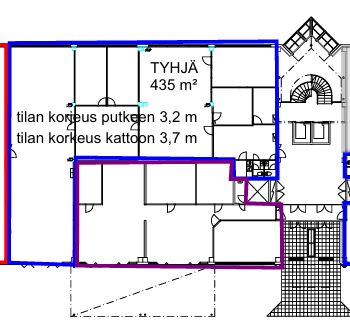 Tilaan johtaa taiteovet suoraan pihatasolta sekä henkilösisäänkäynti B-rapun aulasta. Huonekorkeus on n. 3,2/3,7 m. Tilassa on 2 WC:tä ja selkeä, muunneltava pohjaratkaisu, joka sopii monenlaisiin käyttötarkoituksiin.