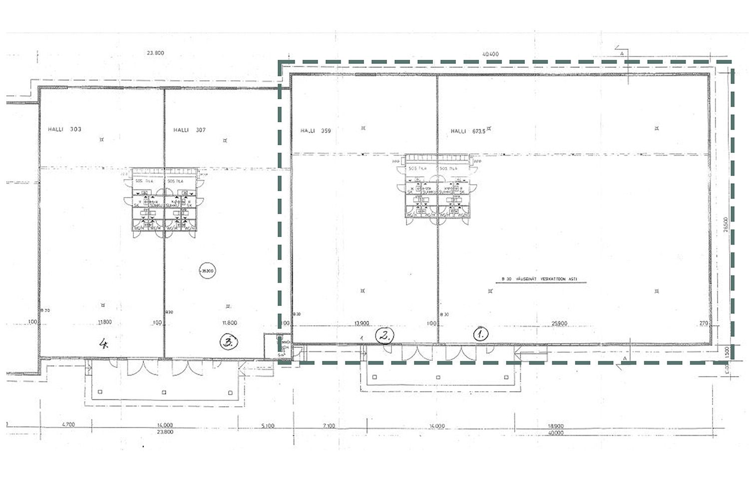 Tilan kokonaispinta-ala on noin 1030 m² ja siitä on mahdollista vuokrata myös puolet tai kolmasosa. Tällä hetkellä tila on pääosin avointa tilaa, mutta helppo jakaa väliseinillä. Tilassa wc- ja sosiaalitilat valmiina. Sisätilan vapaa korkeus on 3,5 metriä. Nykyisten valaisimien alapintaan on lattiasta mitattuna 3,3 metriä. Tilaan on kulku käyntioven, parioven ja lastauslaiturin kautta. Lastauslaituri on pieni ja ja lastaus on lähes maantasolla. Rakennuksessa on useita lattiakaivoja ja vesipisteitä sekä useita wc-tiloja.