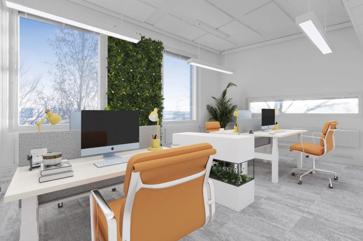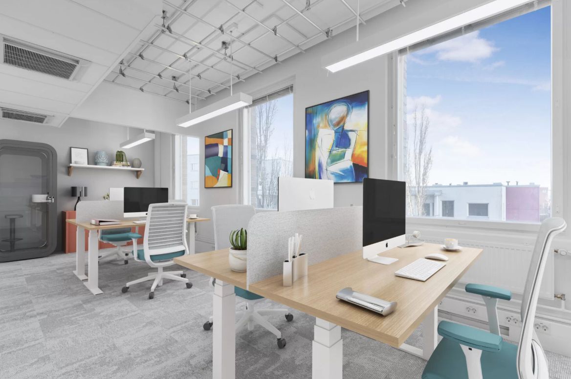 Kiinteistön kolmannesta ja neljännestä kerroksesta vuokrattavana avaria ja valoisia toimistotiloja eri kokoisille tiimeille: