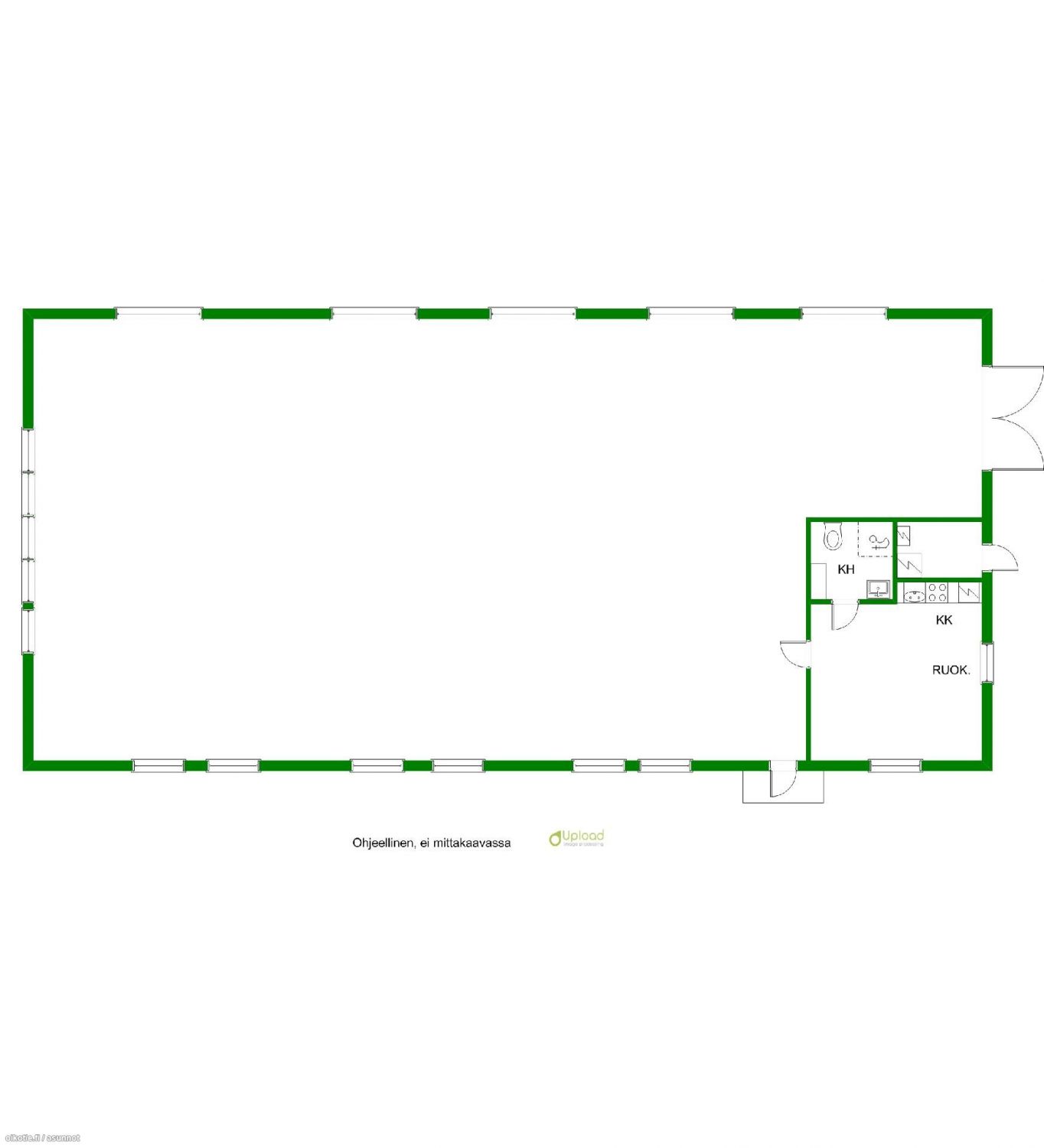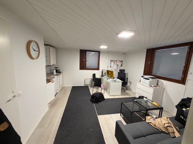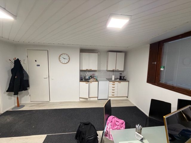 Asiallinen kiinteistö ja hallitila missä siisti toimisto keittiöllä ja Wc / suihkutilat
