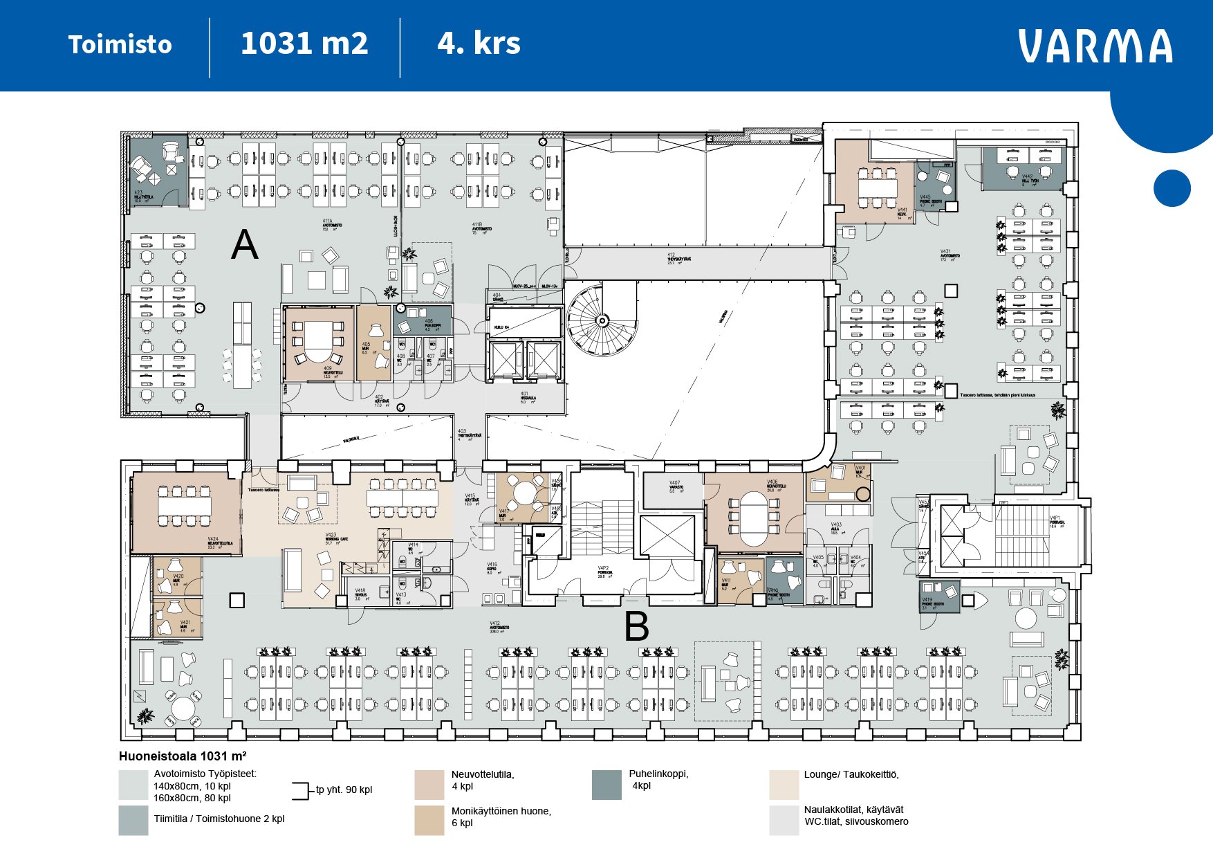 Hieno neljännen kerroksen monitilatoimisto, josta maisemat avautuvat Pitkänsillan ja Eläintarhanlahden suuntaan. Tila on jaettavissa kahteen osaan, joista A-osa on 300m2 ja B-osa 730m2.