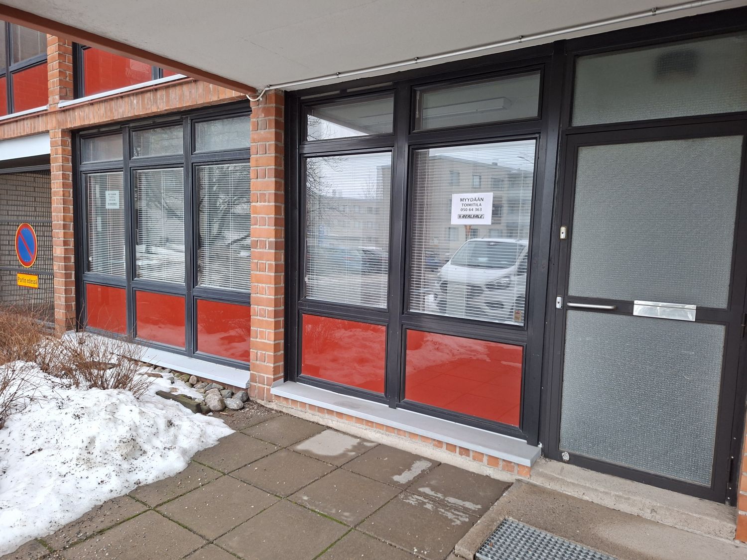 Isot ikkunat sälekaihtimilla kadulle / parkkipaikalle.