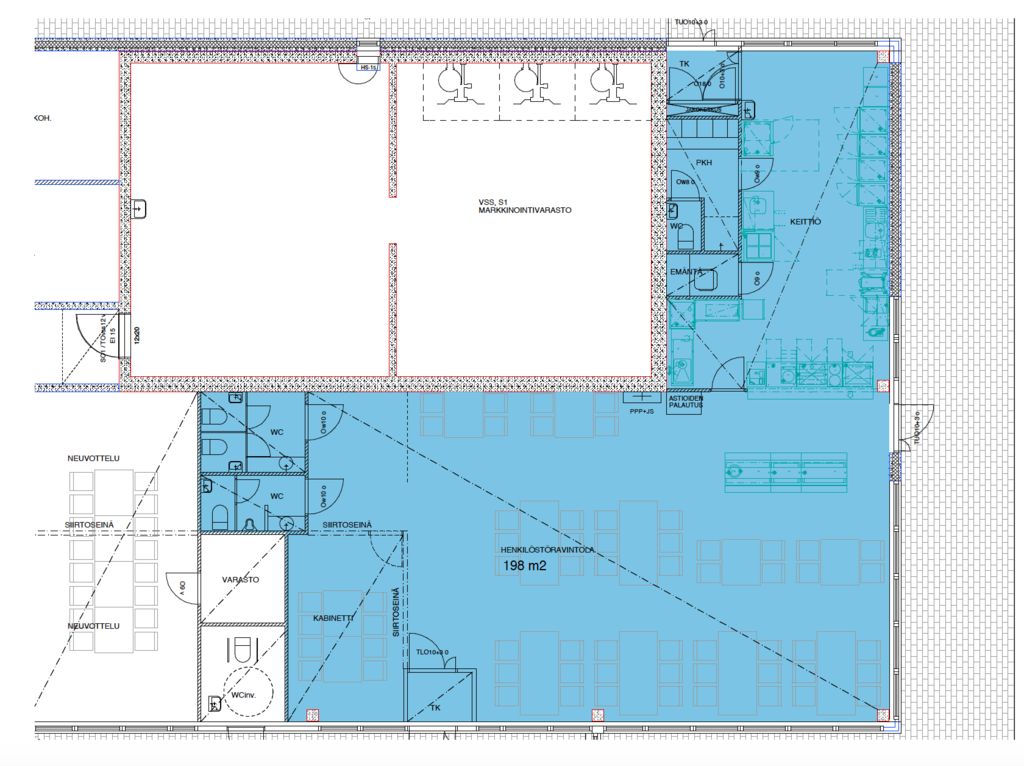 Tämä tila on kooltaan 197 m², ja se sijaitsee kiinteistön katutasossa. Tila koostuu ruokailusalista, kabinetista, varustellusta keittiötilasta sekä sosiaalitiloista. Tilaan on mahdollista toteuttaa myös muunlaista toimintaa, ja se voidaan remontoida myymälä-/liiketilakäyttöön.