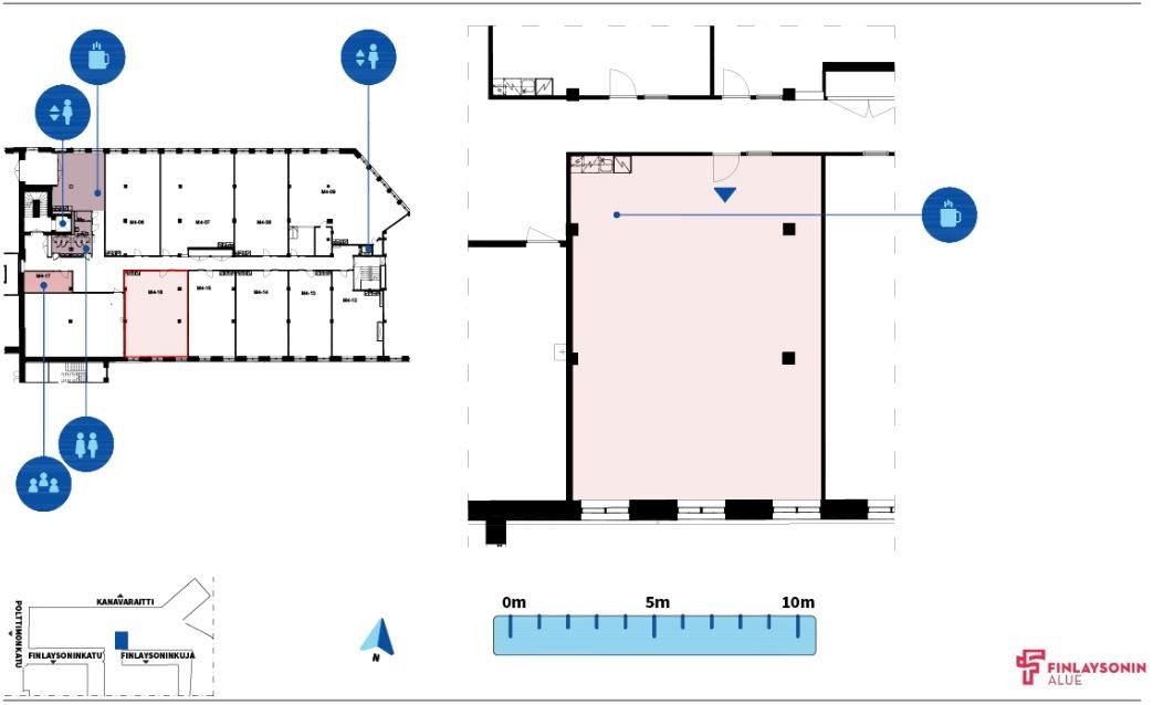 Perinteikäs Finlaysonin alue on vireä liike-elämän, vapaa-ajan ja kulttuuritapahtumien keskus, jossa toimivissa yli 100 yrityksessä työskentelee ja asioi päivittäin tuhansia ihmisiä. Alueen useat ravintolat ja kahvilat mahdollistavat maukkaat lounas- ja kahvihetket. Finlaysonin alueen vanhat tehdasrakennukset tarjoavat yrityksellesi uniikin toimintaympäristön Tammerkosken maisemissa. Alueen rakennukset ovat BREEAM In-Use -ympäristösertifioituja. Finlaysonin alue on helposti saavutettavissa omalla autolla, julkisin kulkuvälinein ja kevyellä liikenteellä. Keskustori ja rautatieasema ovat kävelymatkan etäisyydellä.