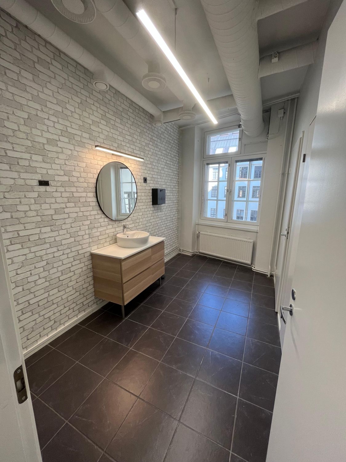 Jos etsit tavanomaista harmaa–valkoista perustoimistoa, tämä tila ei ole teille. Jos sen sijaan haette kaunista, laadukkaasti remontoitua ja persoonallista toimistoa historiallisessa rakennuksessa, tämä voi olla juuri se oikea. Tila on hiljattain saneerattu ja se on heti vapaa uudelle käyttäjälle. Kokonaisuus koostuu kahdesta erillisestä avotilasta, neuvotteluhuoneesta ja avokeittiöstä, ja sitä täydentävät näyttävät wc- ja saniteettitilat sekä suihku. Tilassa on lisäksi tavarahissiyhteys, joka helpottaa arjen logistiikkaa.