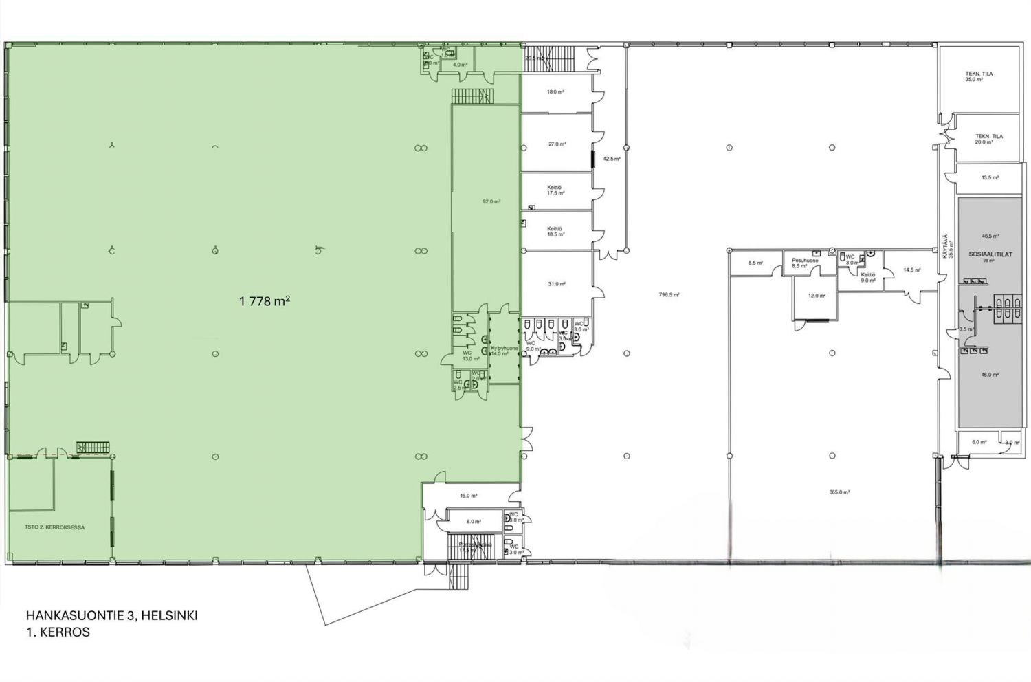 Nyt vuokrattavissa katutason varasto viiden metrin vapaalla korkeudella. Tilaan on erittäin hyvät kulku- ja lastausmahdollisuudet, mikä tekee arjen logistiikasta sujuvaa. Tila vuokrataan yhdessä toisen kerroksen kevytvarasto- tai toimistotilan kanssa, ja näiden tilojen välille on mahdollista toteuttaa tavarahissiyhteys tarpeen mukaan.