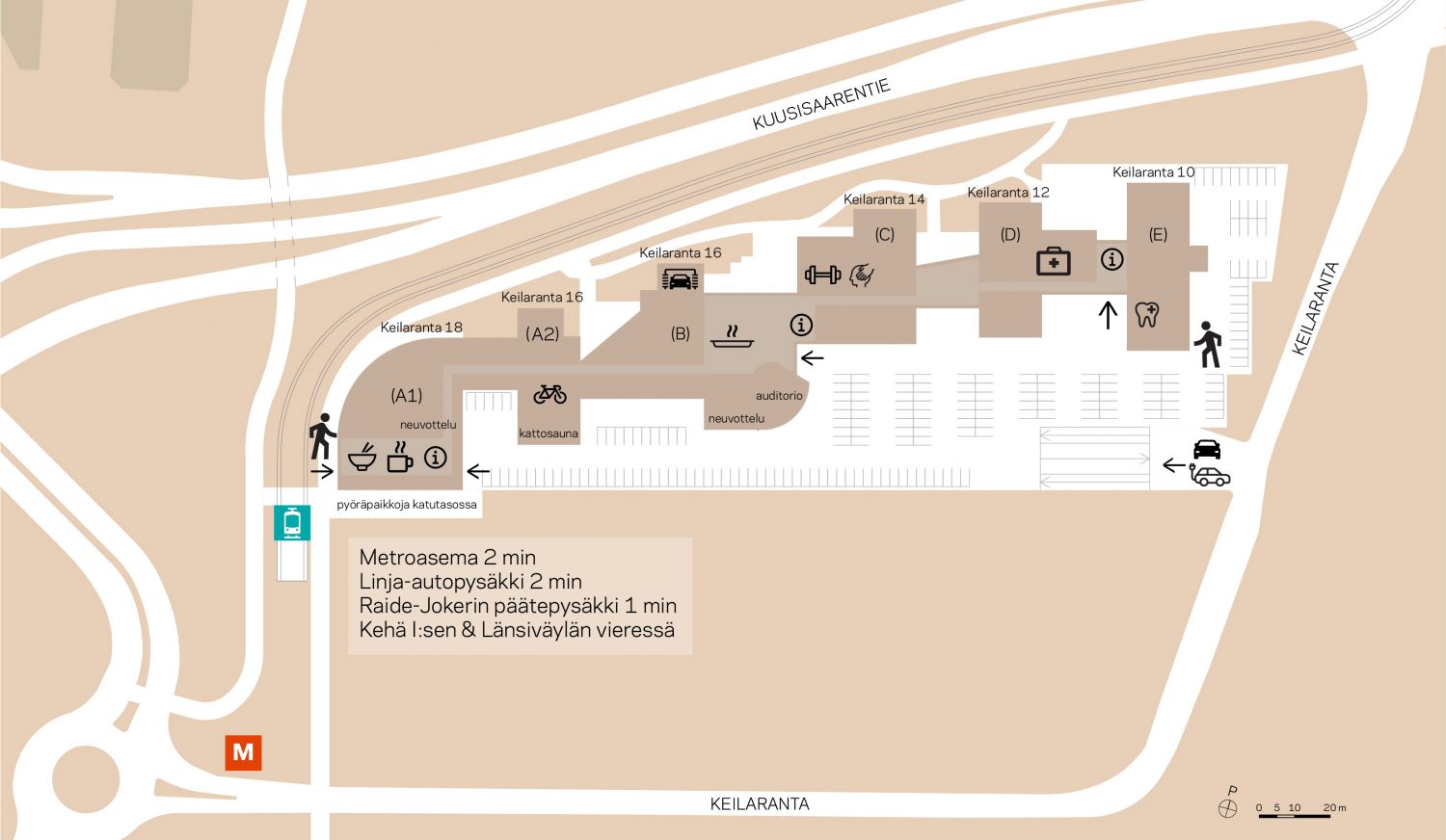 Life Science Center sijaitsee hyvien joukkoliikenneyhteyksien ja ajoväylien varrella Kehä 1:sen ja Länsiväylän yhtymäkohdassa.