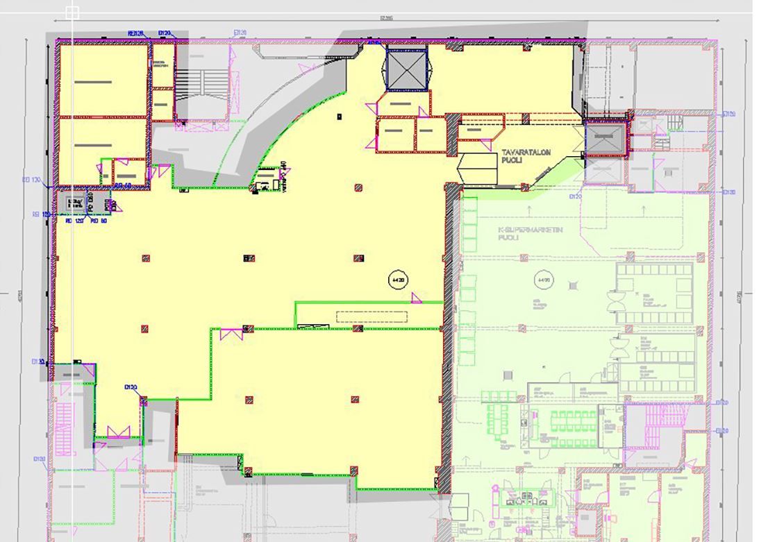 Näkyvällä paikalla sijaitseva isohko liikekiinteistö on saneerattu useaan kertaan, viimeksi vuonna 2013. Kohteeseen on helppo saavutettavuus. Autosaaren pysäköintilaitoksesta on suora kulkuyhteys tavaratalon kerroksiin.