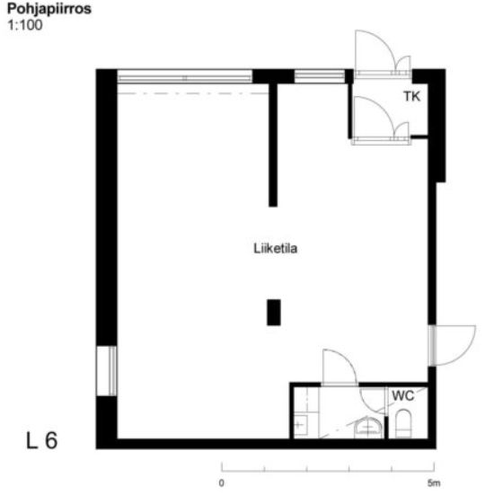 Rauhallisen asuintalon kivijalasta vuokrataan avara liiketila, jossa on isot näyteikkunat kadulle päin. Huoneisto on pääosin avotilaa, jossa on takaseinällä avokeittiö ja erillinen WC sekä siivouskomero. Sisäänkäynti sekä kadun puolelta että rappukäytävästä.