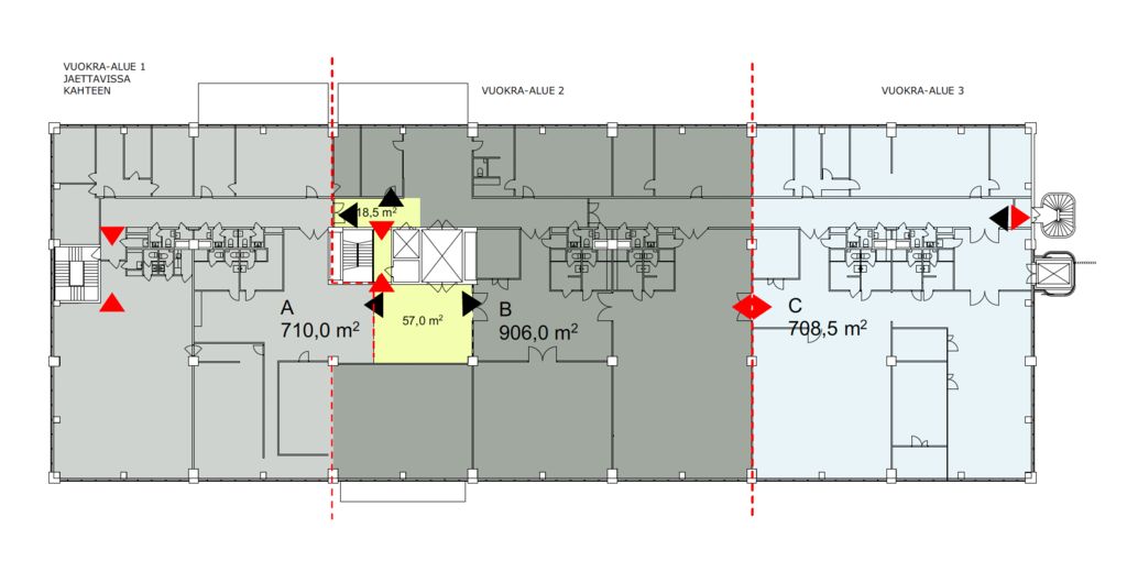 Tämä toimisto-/varasto ja kevyttuotantoon soveltuva tilakokonaisuus on kooltaan yhteensä noin 2855,5 m². Kokonaisuus jakautuu 2. kerroksen 455,5 m² ja 3. kerroksen 2400 m² kokoisiin tiloihin. Vapaa korkeus on 4,2 metriä. Tiloihin on tavarahissiyhteys. Kerrokset on mahdollista vuokrata myös erikseen. 3. kerros on mahdollista jakaa kahdelle, kolmelle tai neljälle käyttäjälle. Mahdollisia vuokrattavia tilakokoja ovat mm. 710 m², 361,5 m², 906 m² ja 1164 m².