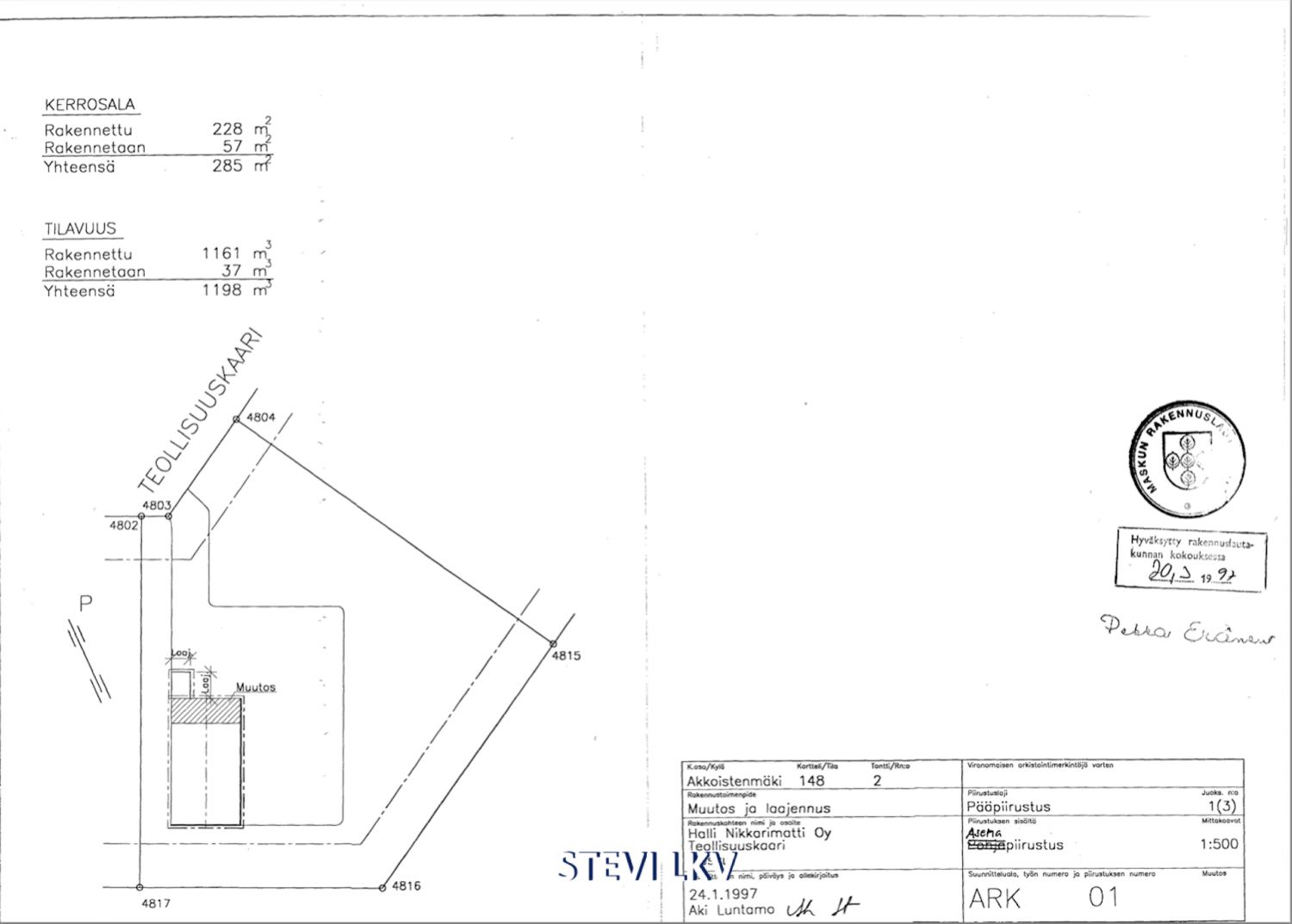 Kiinteistön koko rakennusoikeus on 804m2 eli rakennusoikeutta on vielä reilusti jäljellä noin 519m2.
