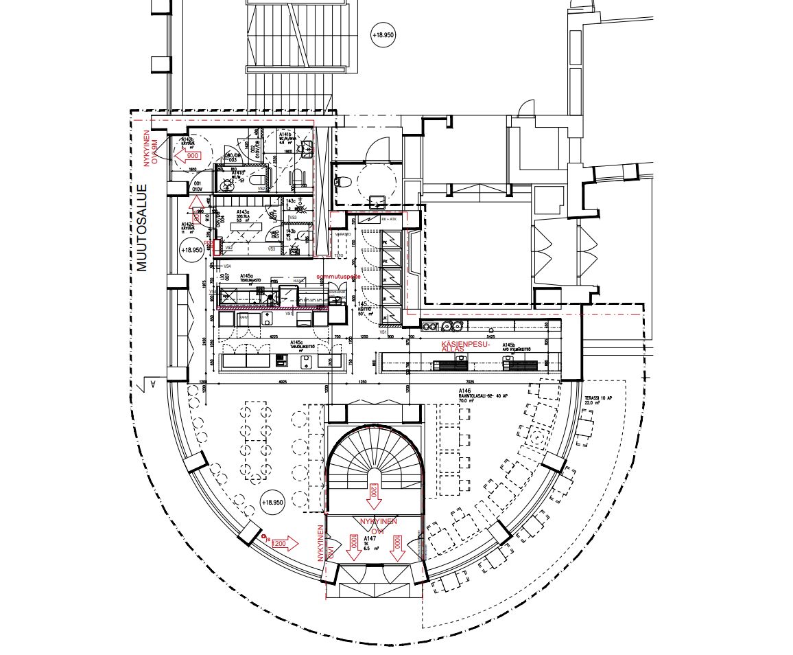 Näyttävä ravintolatila täysin saneeratussa funkiskiinteistössä. Tila yhdistettävissä K1-kerroksen ravintolatilan kanssa ja vuokrattavissa kokonaisuutena, joten tarjoaa hyvät mahdollisuudet erilaiseen ravintolatoimintaan. Sijainti hyvien joukkoliikenneyhteyksien lähellä, mm. metro ja raitiovaunu. Ota yhteyttä ja sovi esittely, vuokrauspalvelumme on tilanhakijoille maksuton.