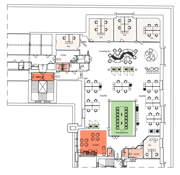 Vuokrataan kuudennen kerroksen 586 m2 toimistotila Merikorttelista Punavuoresta. Tilaan on useampia sisäänkäyntejä. Tilat odottavat betonipinnoilla uuden vuokralaisen materiaalivalintoja. Tila toimi 2023 Helsinki Design Weekin päänäyttämönä.