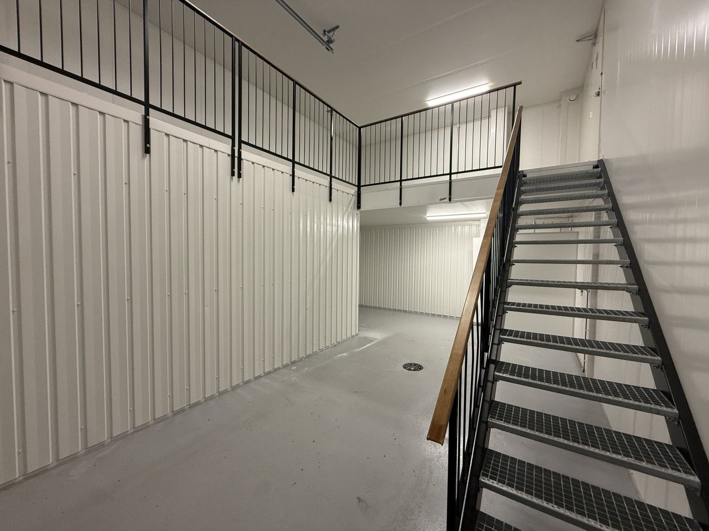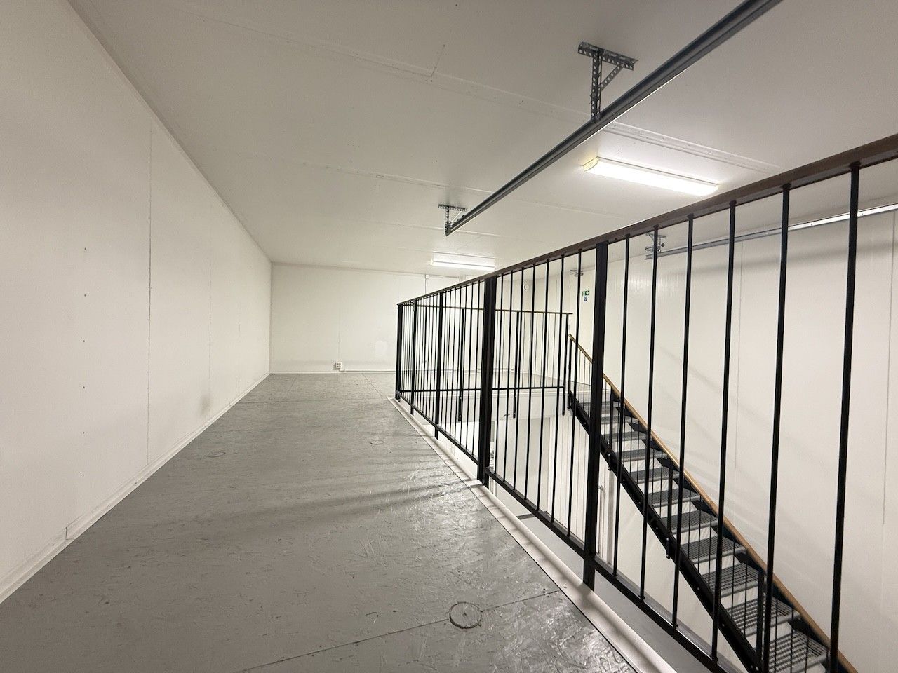 Korkealaatuinen parvitila: Osa tilasta on valmiiksi rakennettu parvea, jonne on asennettu kunnolliset, turvalliset portaat. Parvi lisää tilan käytettävyyttä ja tehokasta pinta-alaa.