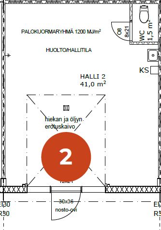 Pesumahdollisuus, vedenkestävä lattiapinnoite, hiekan- ja öljynerotuskaivo, voimavirta, koneellinen poistoilma, vesikiertoinen lattialämmitys, led-valaistus, sammutin. Pituus noin, 6,8m, leveys noin 6m korkeus noin 5m, parven alta korkeus noin 2,4m, nosto-ovi 3x3,6m.