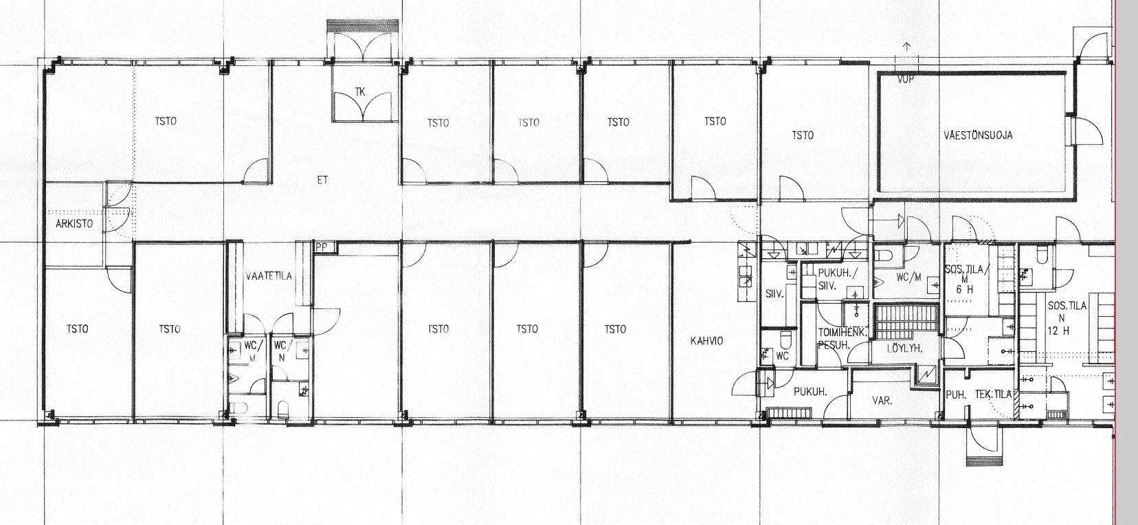 Toimisto ja pukuhuonetilaa yhteensä n. 450 m². Kiinteistöllä hyvin paikoitustilaa autoille.