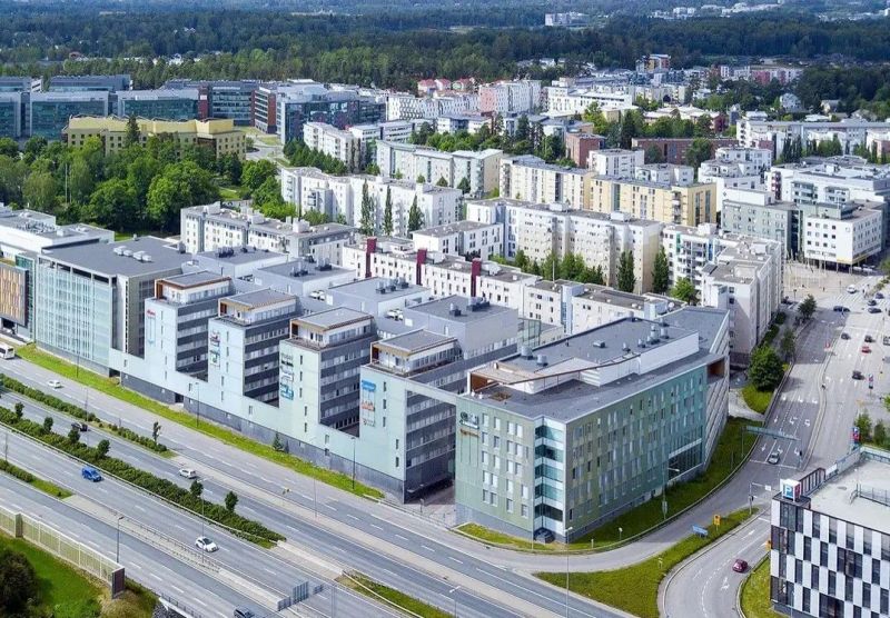 Viidestä talosta koostuva huippumoderni toimistokeskittymä Leppävaarassa.
